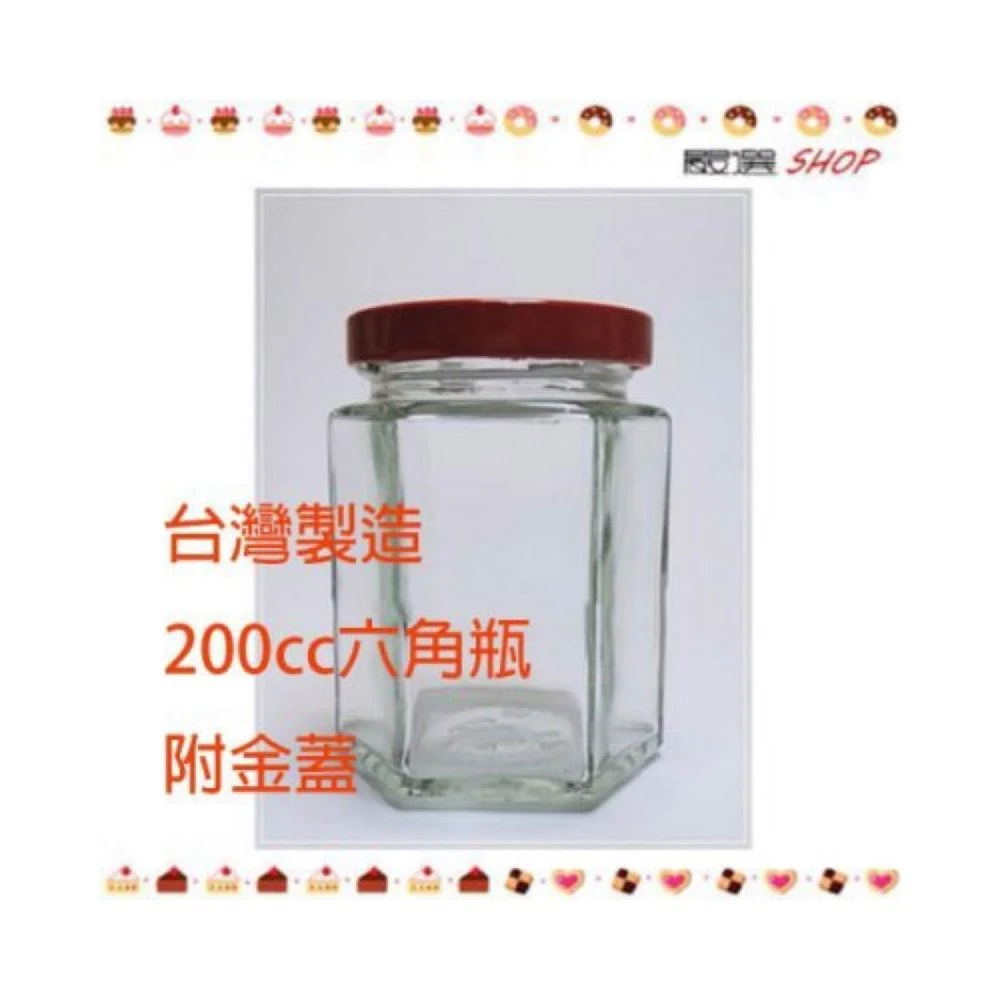 嚴選SHOP 台灣製造 附金蓋 200cc 六角瓶 玻璃瓶 果醬瓶 醬菜瓶 T009