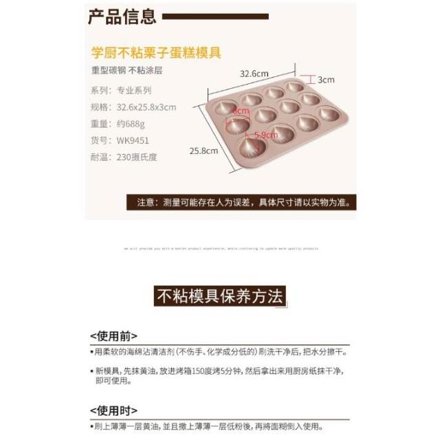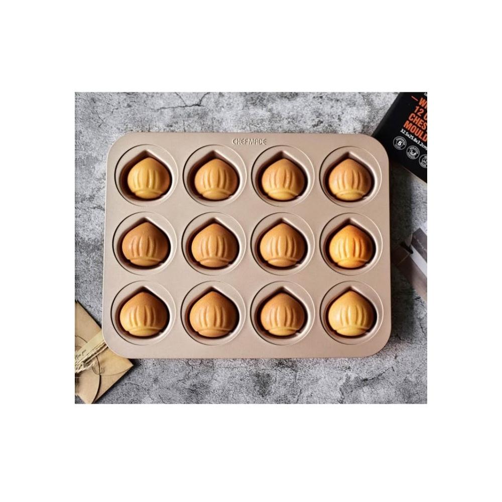 嚴選SHOP Chefmade學廚12連栗子蛋糕模不沾模12連杯栗子蛋糕模12連蛋糕模WK9451不沾模具 K144
