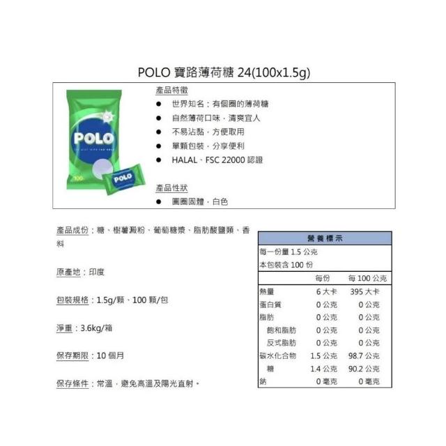 嚴選SHOP 寶路薄荷糖 100入 Polo寶路 薄荷糖 雀巢寶路薄荷糖果 迎賓糖 餐後糖 涼糖 壓片糖 Z398