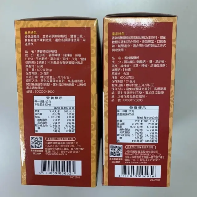 嚴選SHOP 小磨坊 廟口小吃 香辣椒鹽粉 傳香特級胡椒粉 600公克 全素 純素 廟口小吃 小磨坊胡椒鹽 Z085
