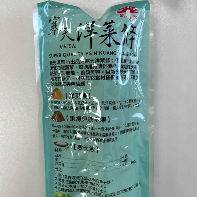 嚴選SHOP 新光洋菜條 (寒天) 全素 洋菜條 37g 新光牌 寒天洋菜條 寒天藻絲 果凍 布丁 茶凍 Z160