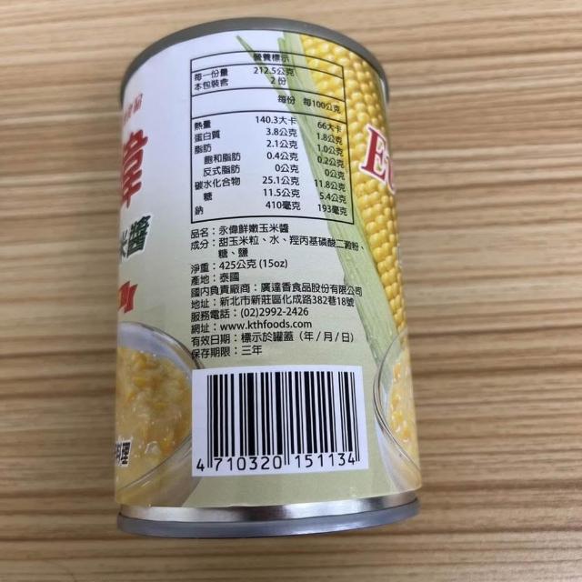 嚴選SHOP 廣達香 永偉玉米醬425g 永偉玉米粒340g 鮮嫩玉米醬 鮮嫩玉米粒 Z176