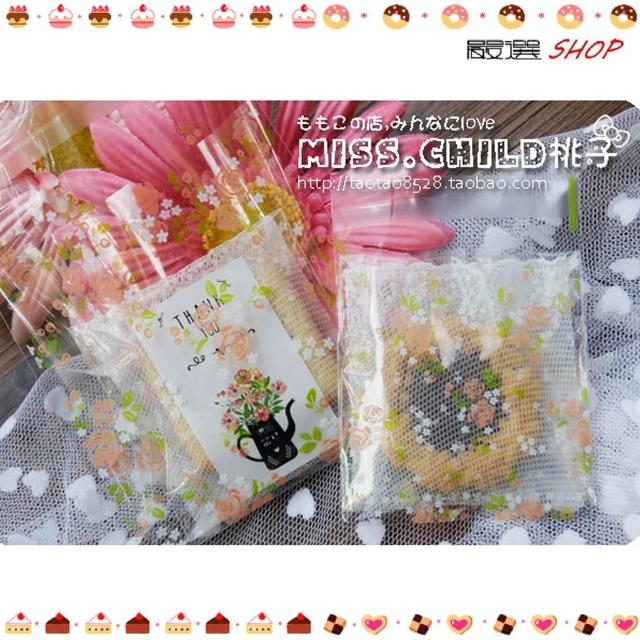 嚴選SHOP 95入 玫瑰小碎花 自黏袋 餅乾袋 透明袋 塑膠袋 D090