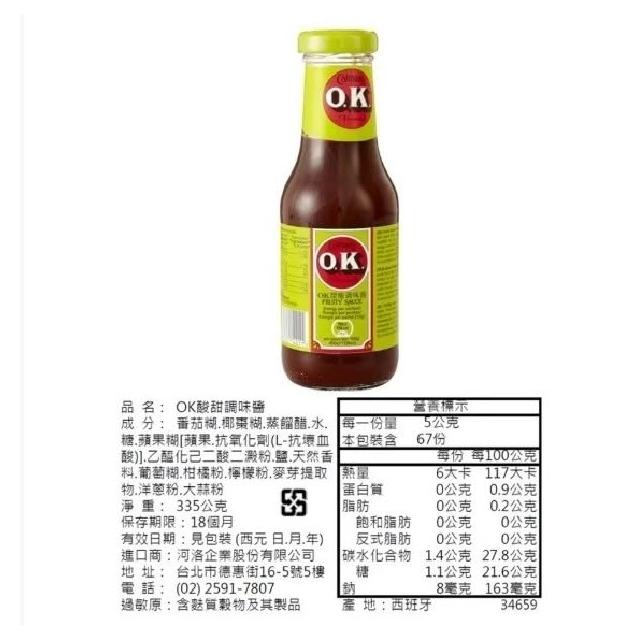 嚴選SHOP Colman's 英國 OK酸甜調味醬 335g OK醬 OK汁 酸甜醬 醃肉醬 Z732