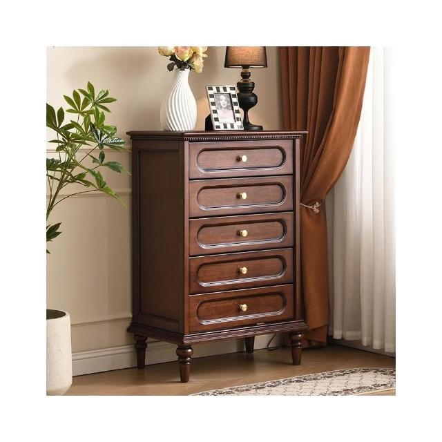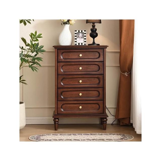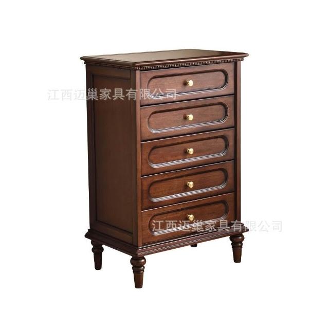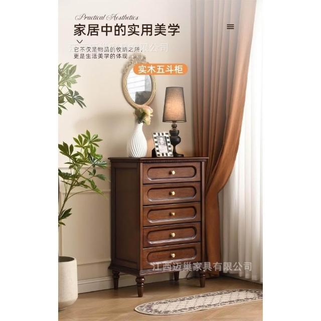 中古風五斗櫃實木收納櫃臥室置物櫃客廳靠牆抽屜櫃美式復古櫃子