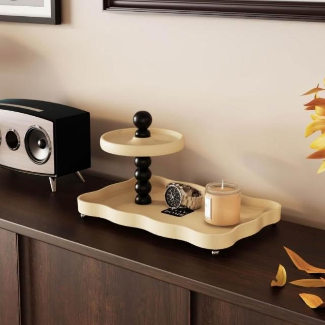 复古中古风入户玄关钥匙收纳置物架创意轻奢桌面双层简约装饰托盘
