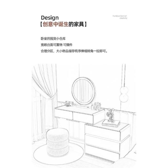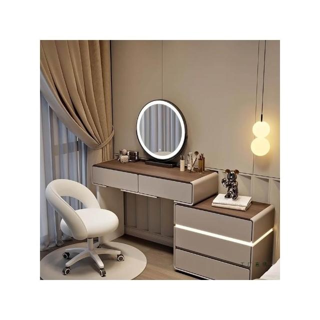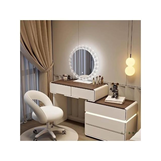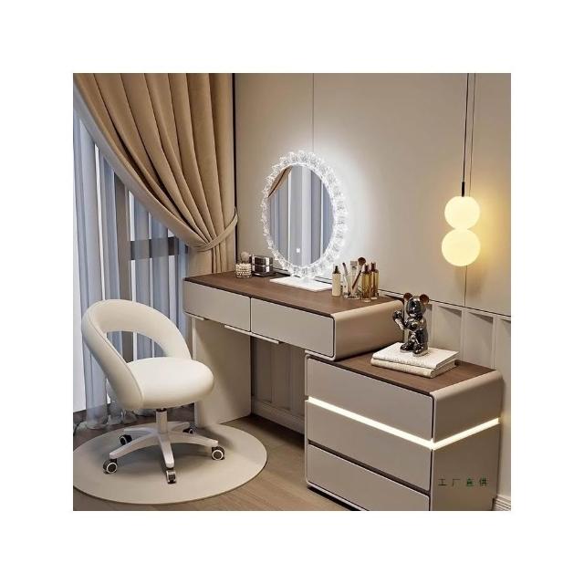 實木奶油風梳粧檯現代簡約意式小型臥室輕奢感化妝桌鬥櫃一體