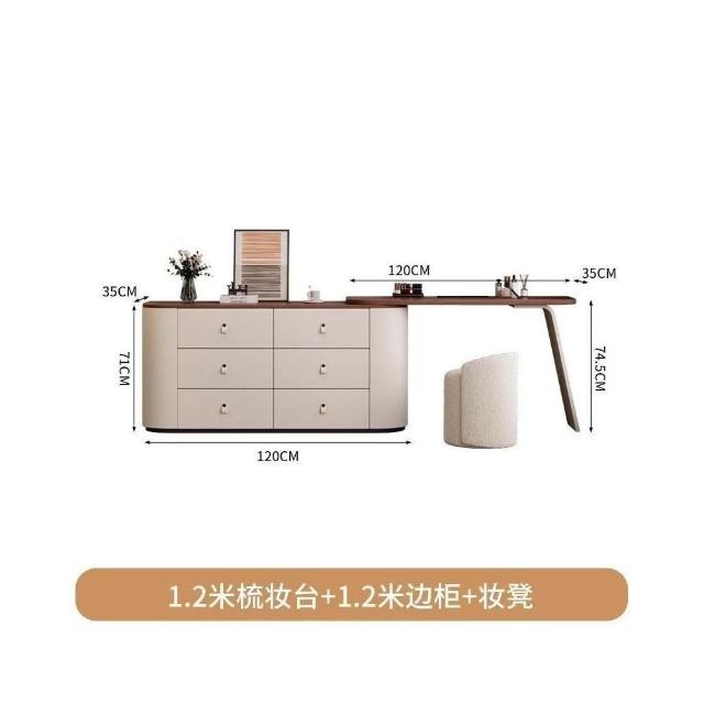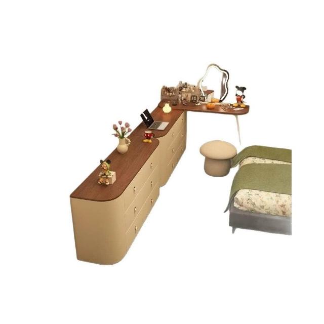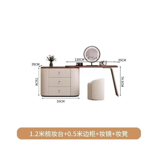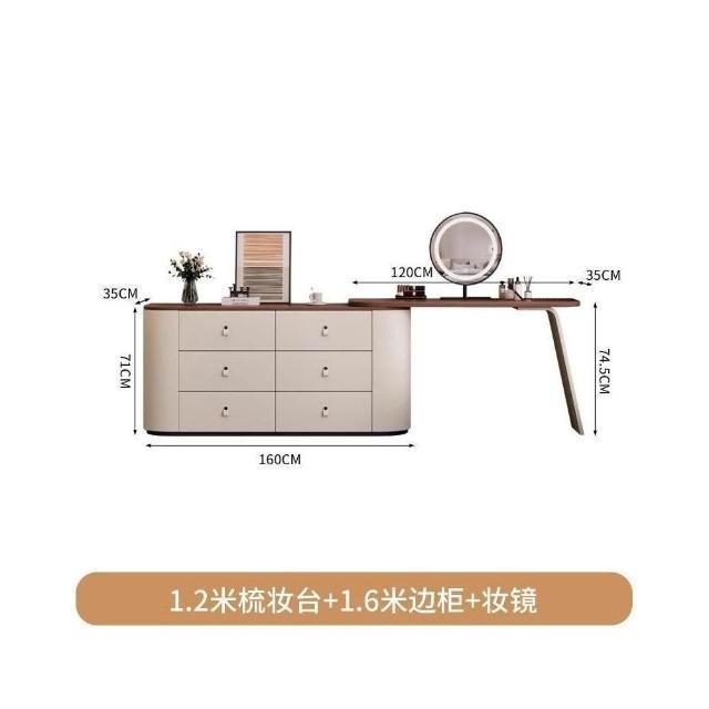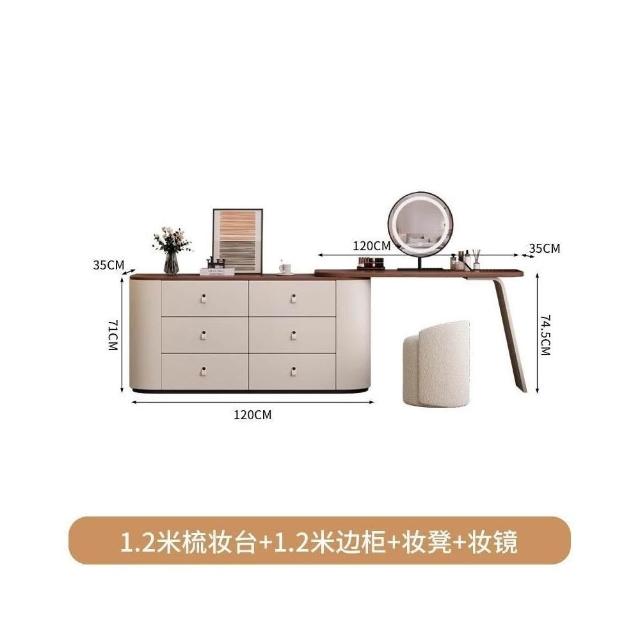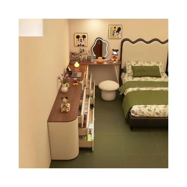 化妝桌 書桌鬥櫃一體 實木簡約化妝台 臥室梳粧檯 收納櫃 組合多功能床尾高級