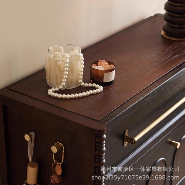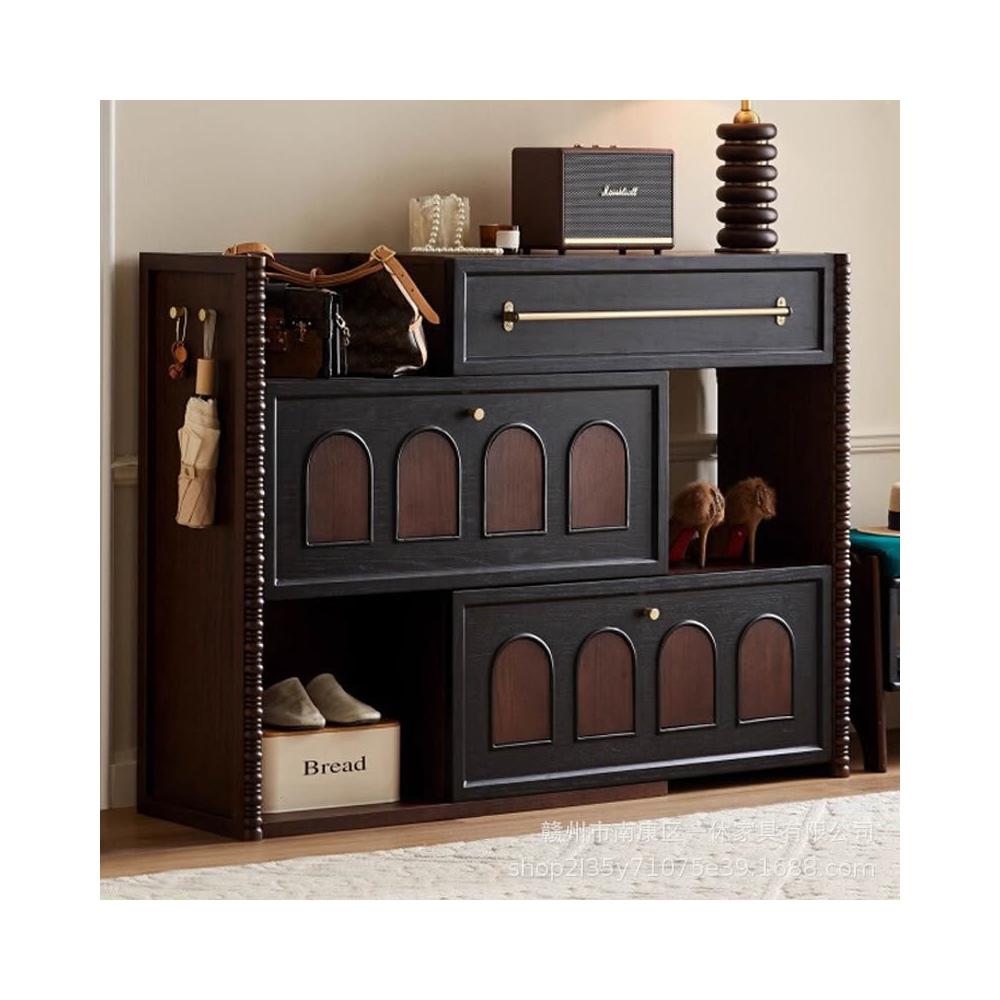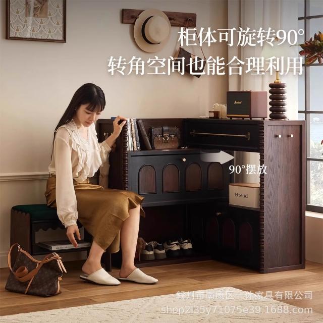 法式复古实木鞋柜白蜡木伸缩鞋柜入户玄关柜客厅家用储物收纳柜