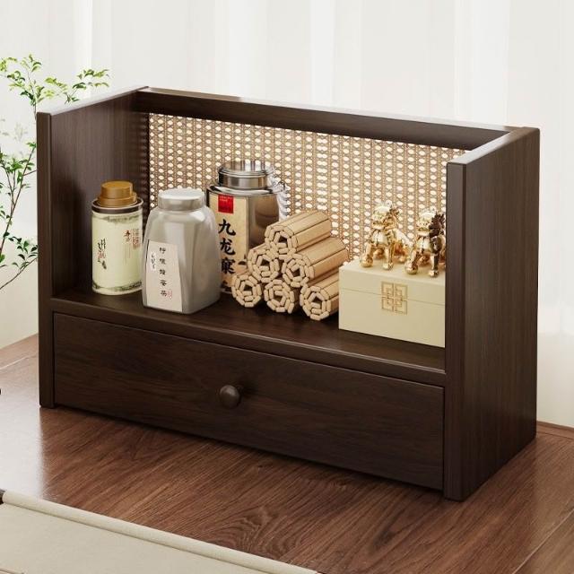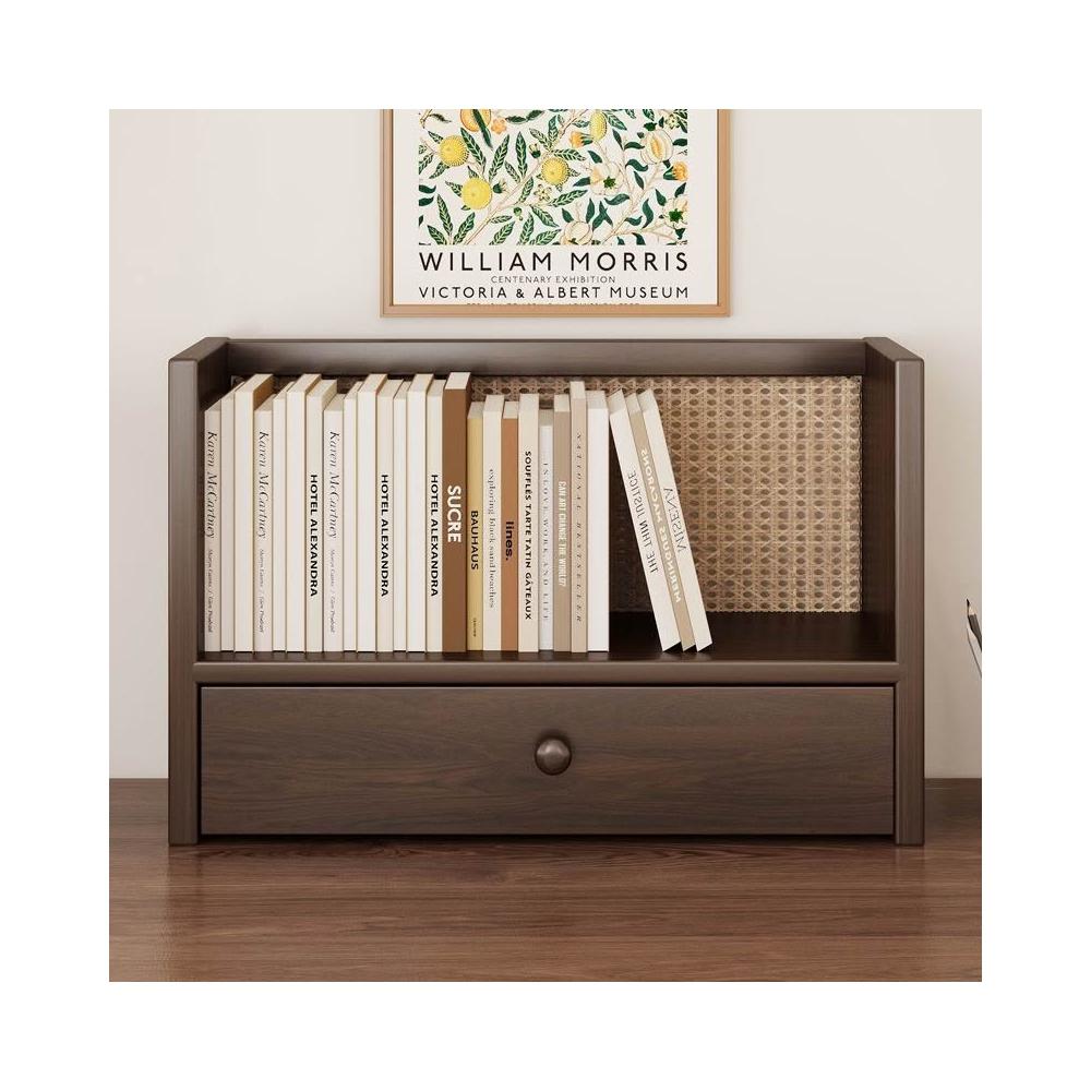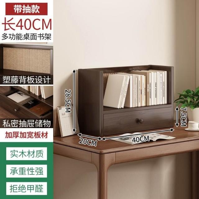 實木書架桌面置物架桌上家用立式帶抽收納架子辦公桌小型簡易書櫃