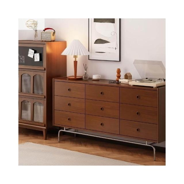 輕奢復古實木九鬥櫃中古實木客廳高級感抽屜櫃置物櫃一體復古鬥櫃