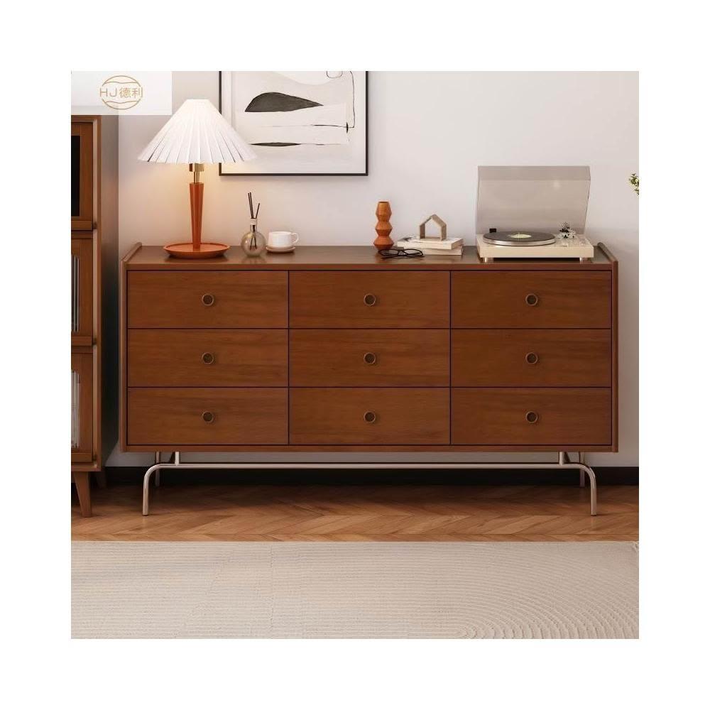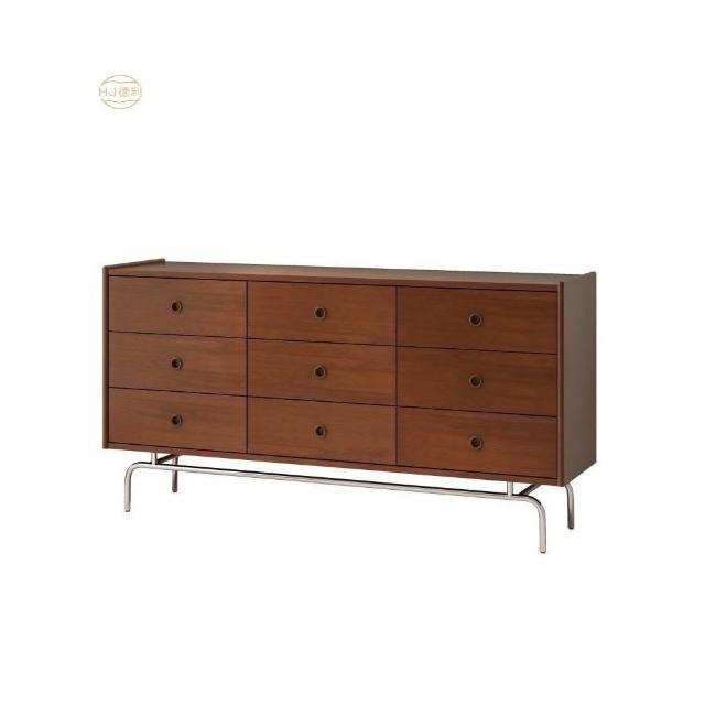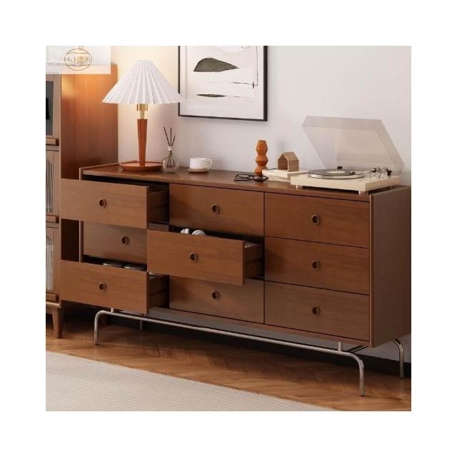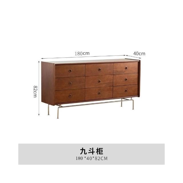 輕奢復古實木九鬥櫃中古實木客廳高級感抽屜櫃置物櫃一體復古鬥櫃