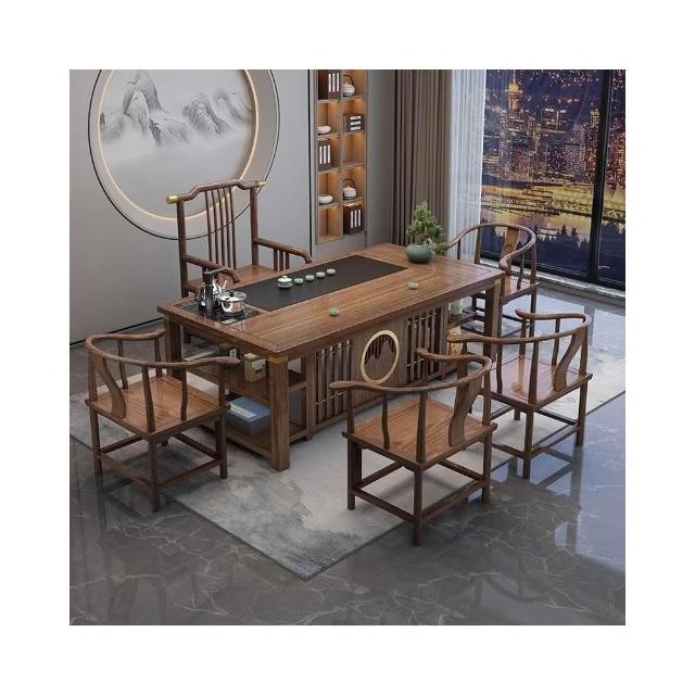 新中式茶桌椅組合實木辦公室功夫茶幾家用套裝一體陽臺小型泡茶臺