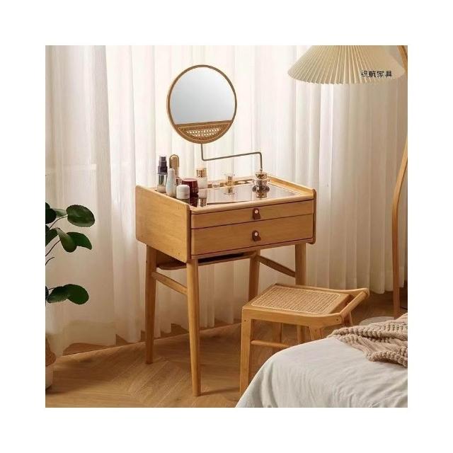 日式梳粧檯 小型臥室化妝台 迷你化妝臺 60cm小戶型化妝台 極窄化妝桌 ins床頭收納