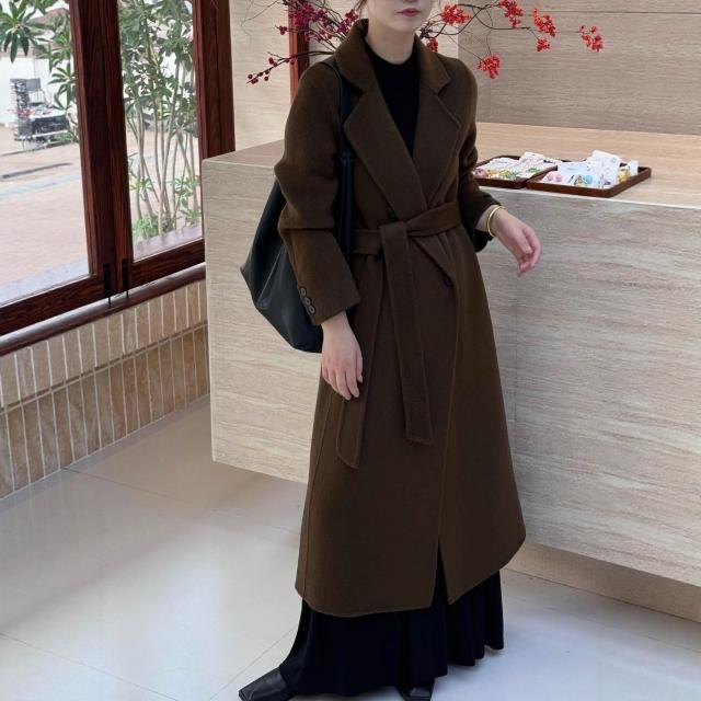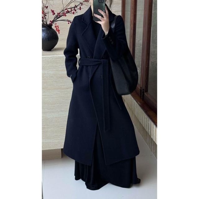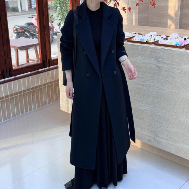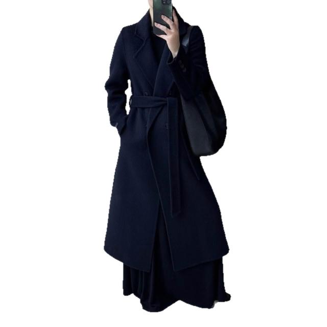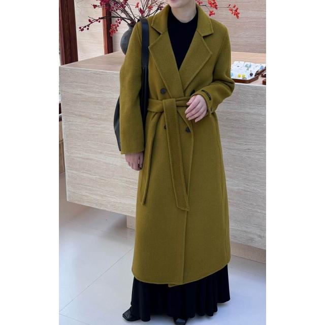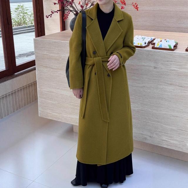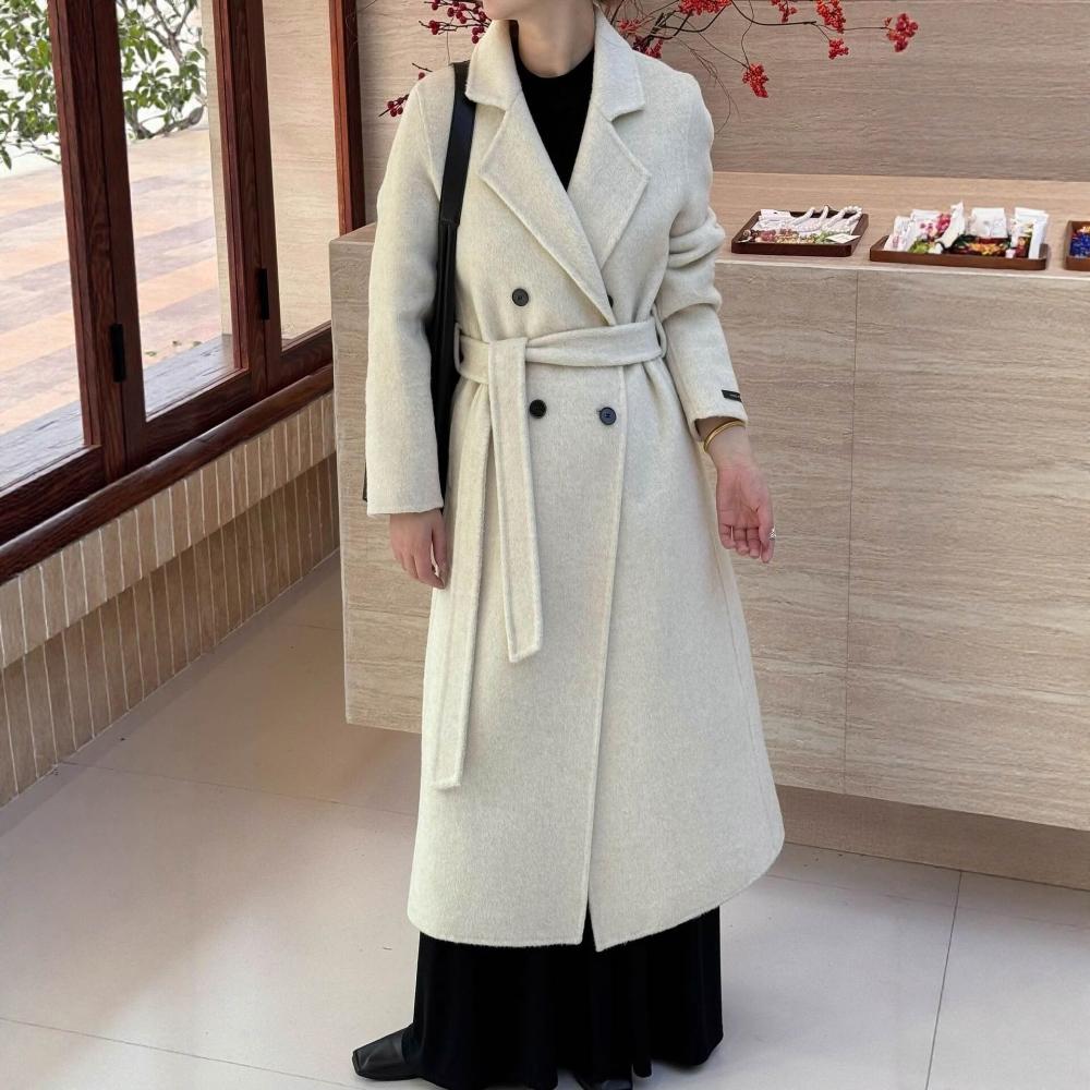 2025秋冬新款氣質雙面羊毛大衣女中長款韓系高級感雙排扣毛呢外套