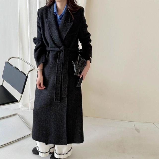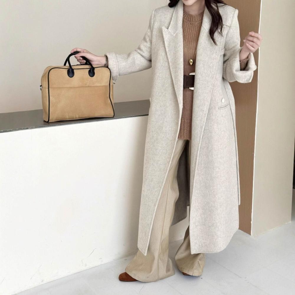 秀場大衣雙面羊毛大衣女秋冬新款西裝領中長款赫本風毛呢外套