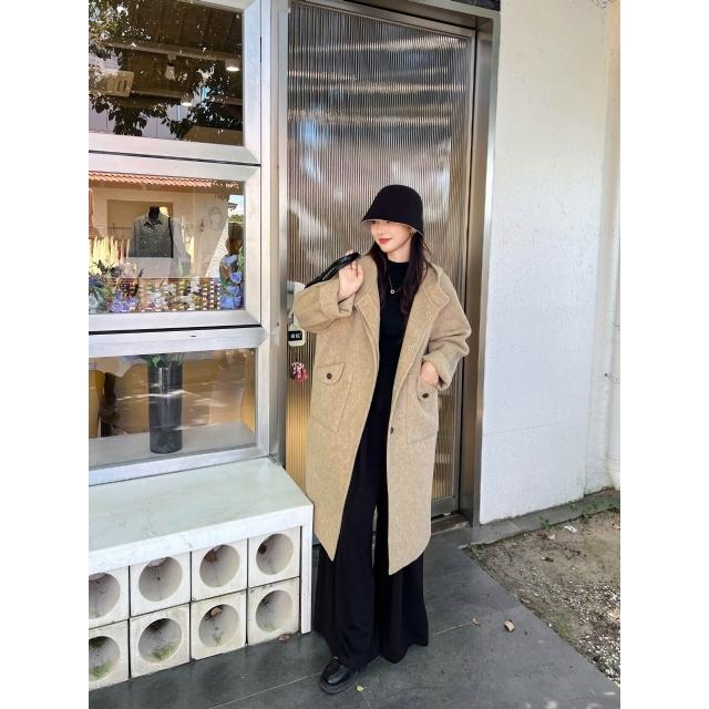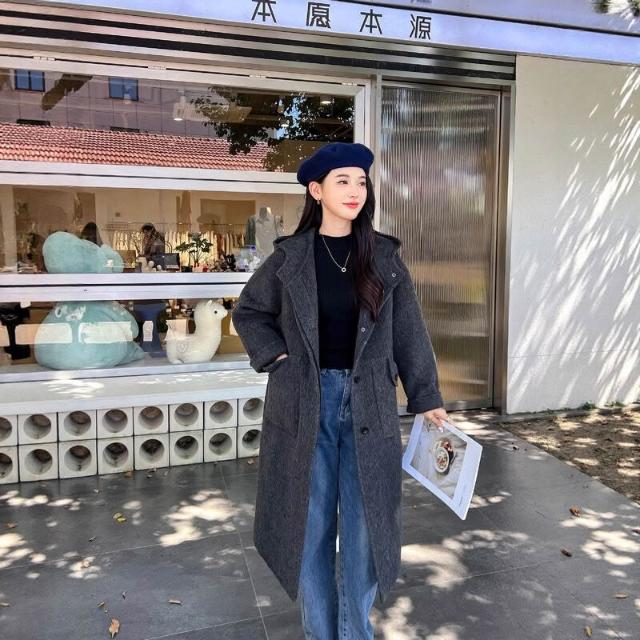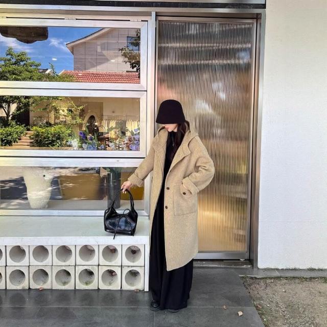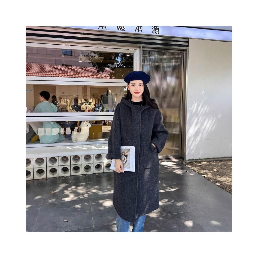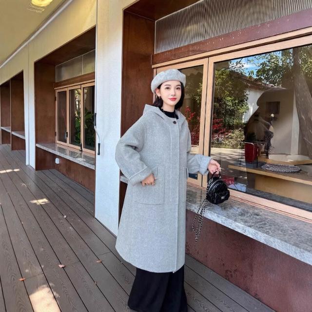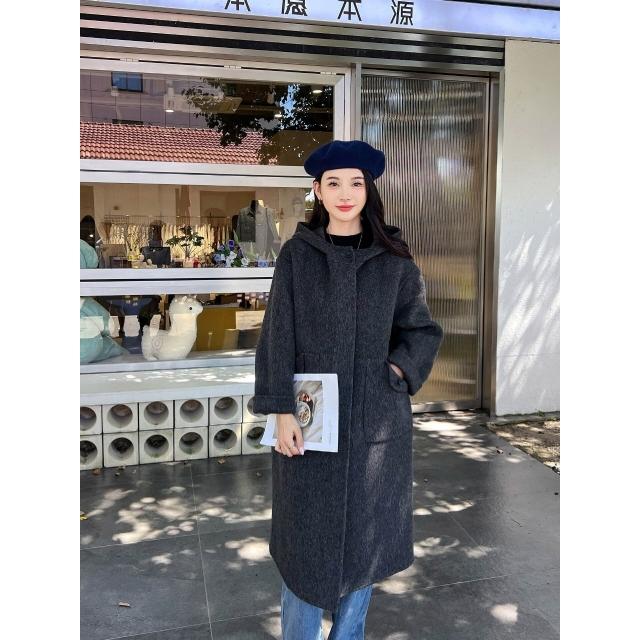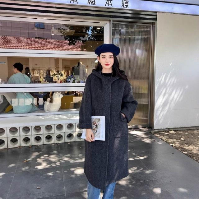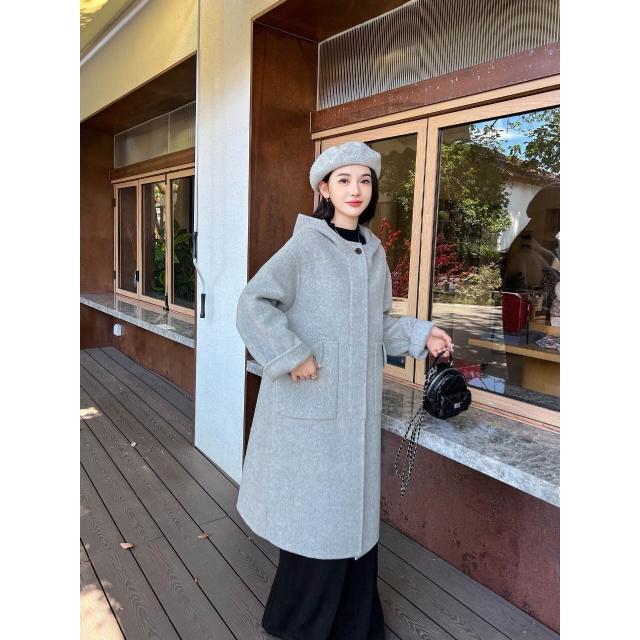 2025秋冬新款雙面羊毛大衣女連帽加長款過膝羊毛寬松氣質毛呢外套