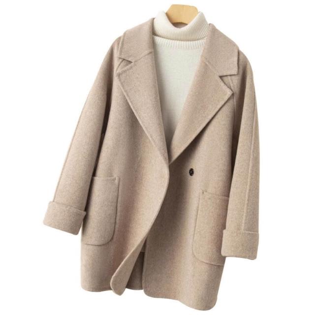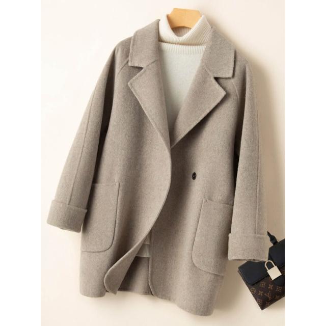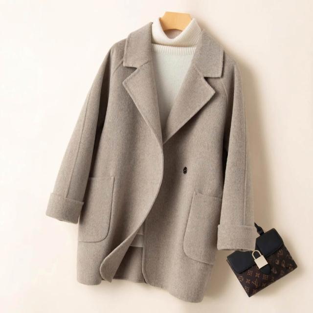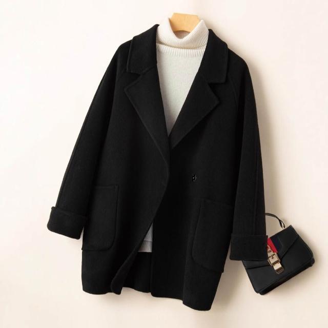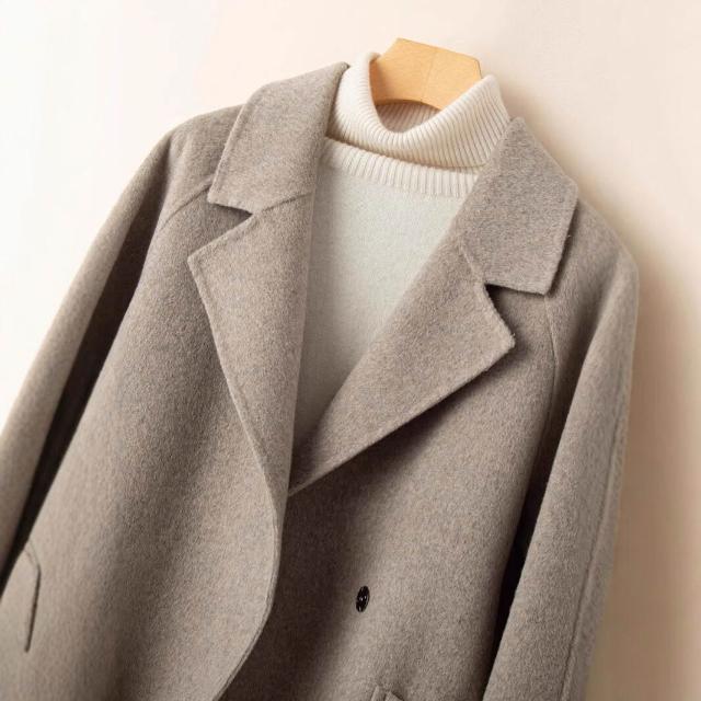 2025秋冬新款雙面羊絨大衣女中長款小個子赫本風100%純羊毛外套