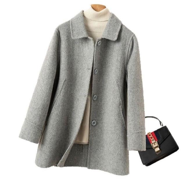 毛呢大衣 2026新款 大衣 秋冬季 雙面絨大衣 女中長款大衣 小個子娃娃領大衣 呢子外套