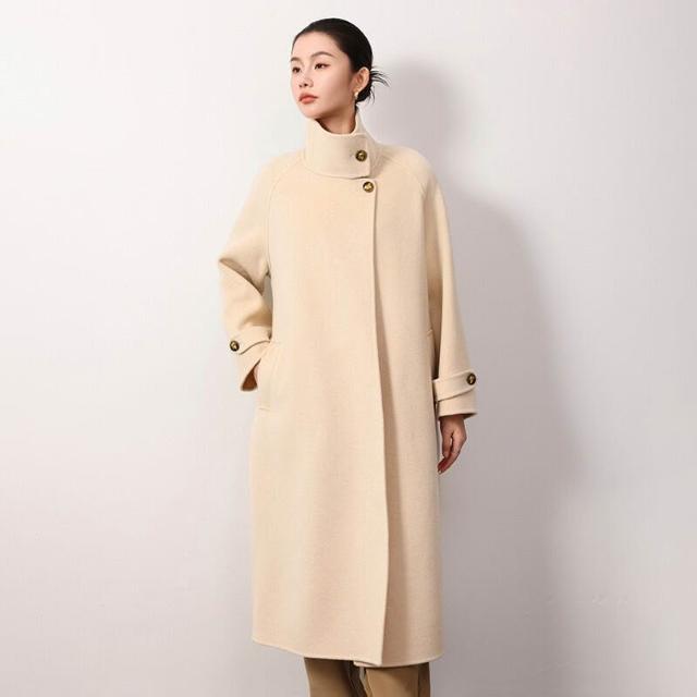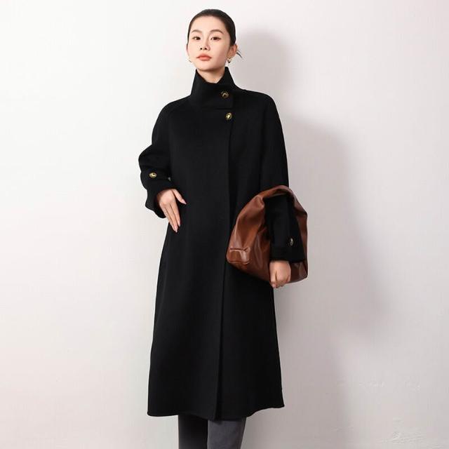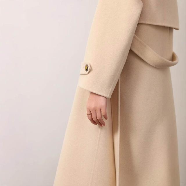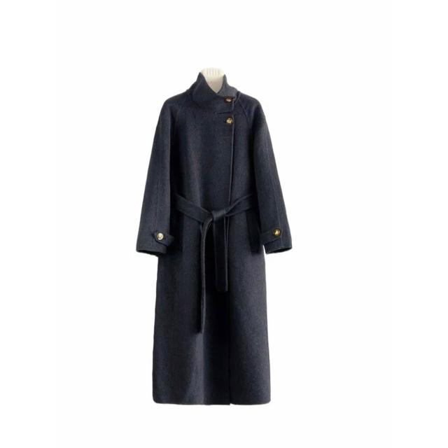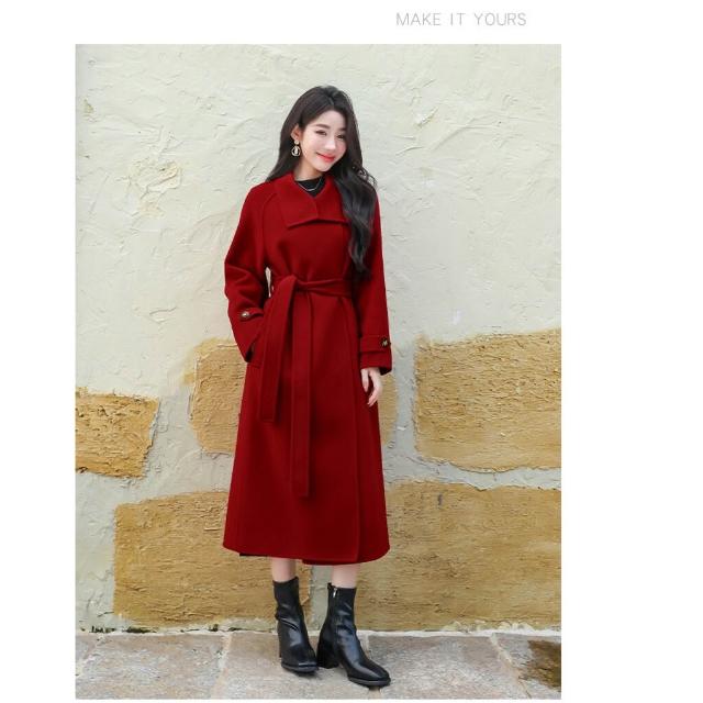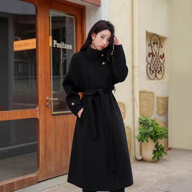 高級感雙面羊毛呢大衣秋冬女長款過膝氣質赫本風立領系帶高端外套