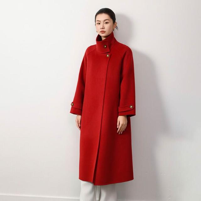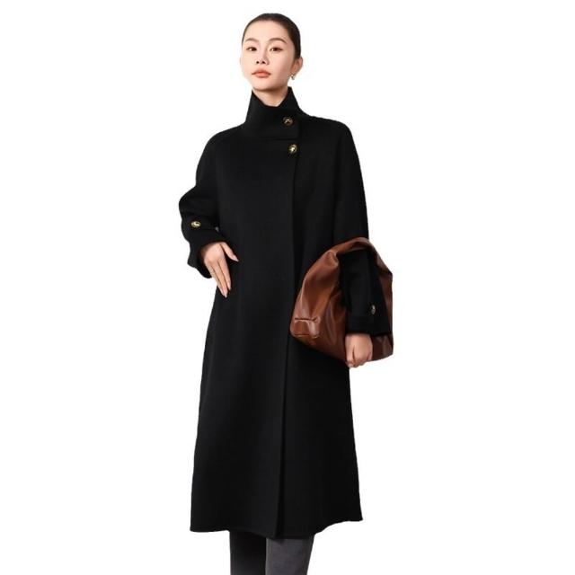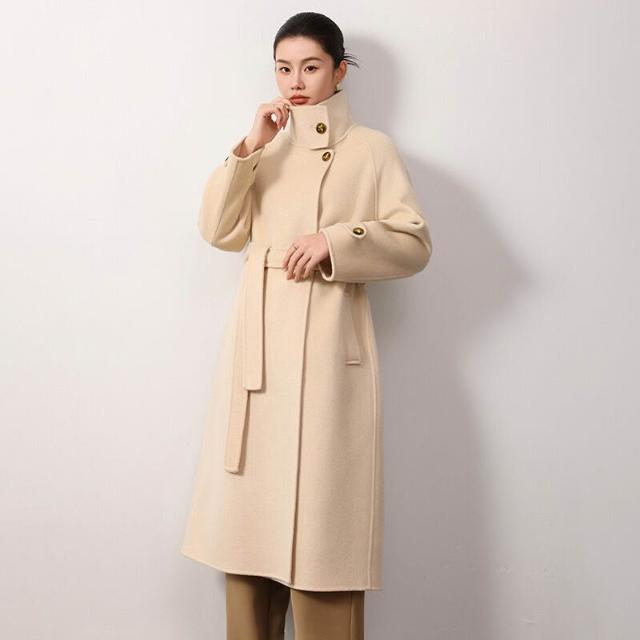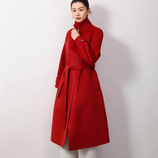 高級感雙面羊毛呢大衣秋冬女長款過膝氣質赫本風立領系帶高端外套