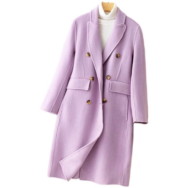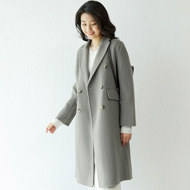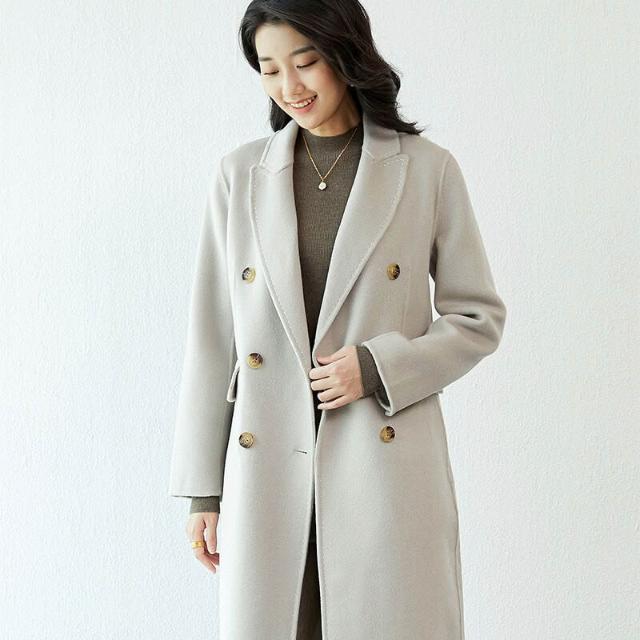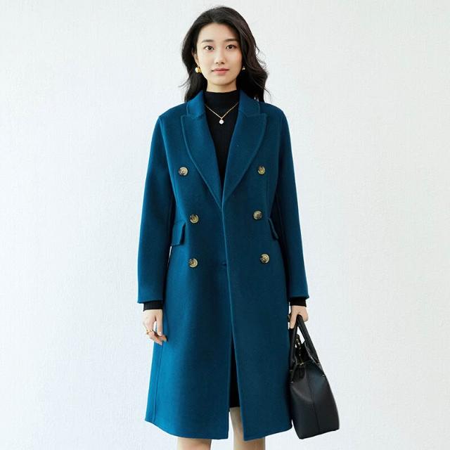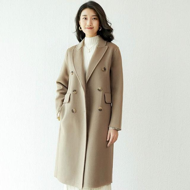 2025秋冬雙面呢大衣女士羊毛西裝領毛呢羊絨過膝長款外套潮