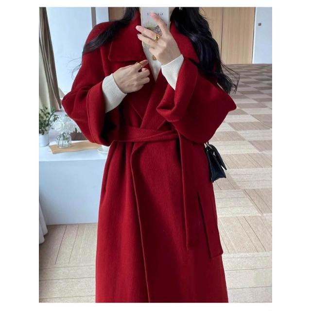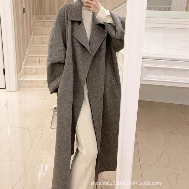2025秋冬新款雙面羊絨大衣女加長款過膝高個子毛呢外套羊毛雙面呢