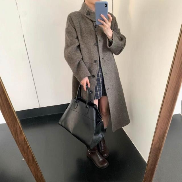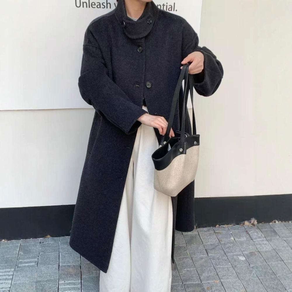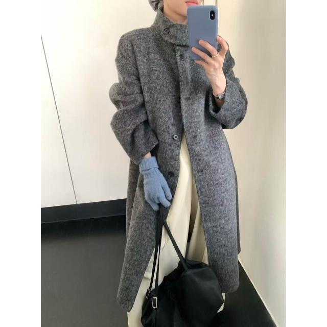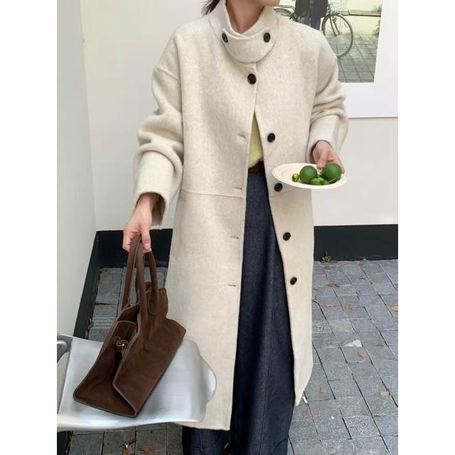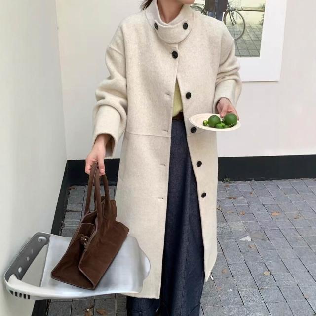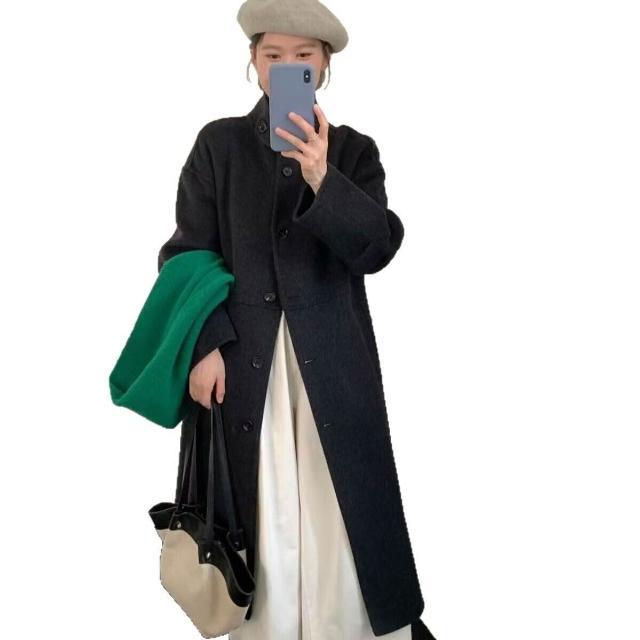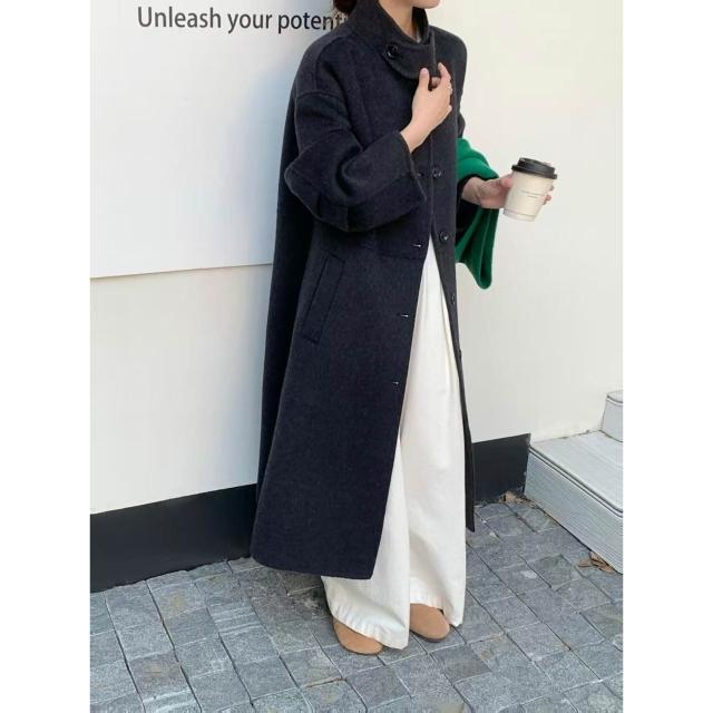 2025新款秋冬毛呢大衣女長款韓版時尚立領羊毛呢外套大衣女雙面羊