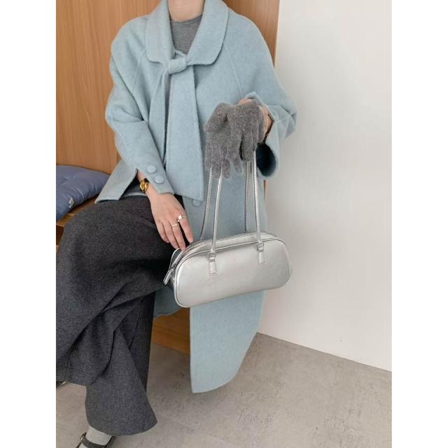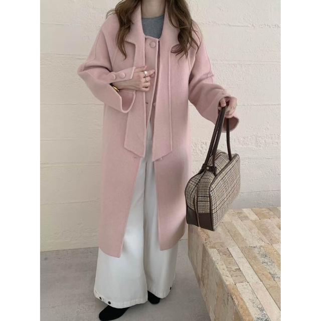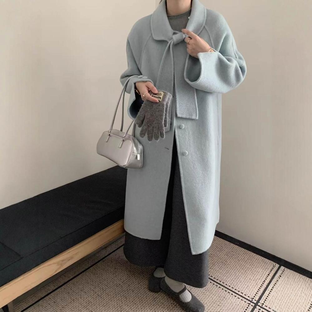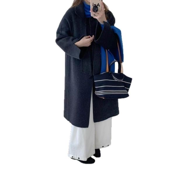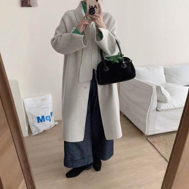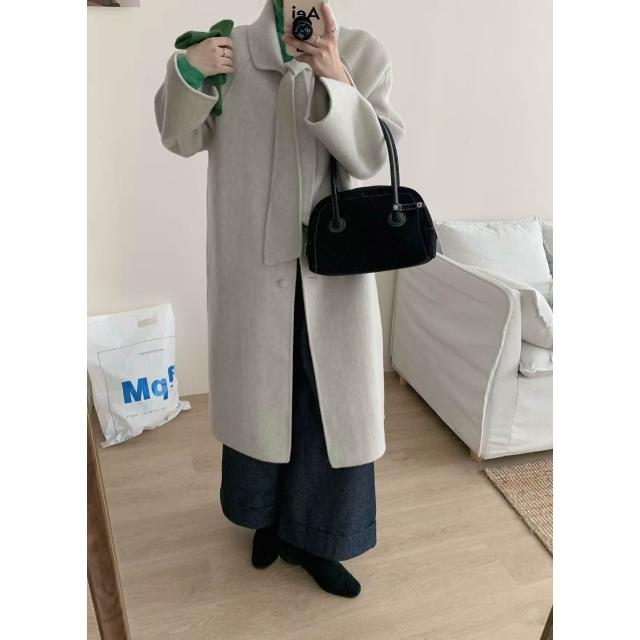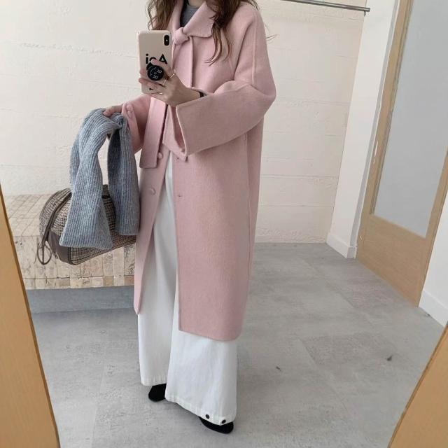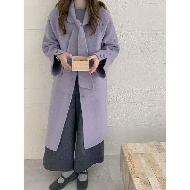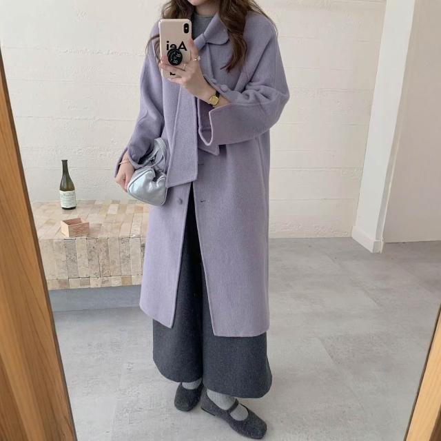 韓系赫本風紫色呢子大衣女2025秋冬新款中長款毛呢外套加厚女