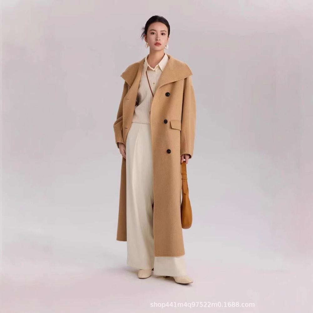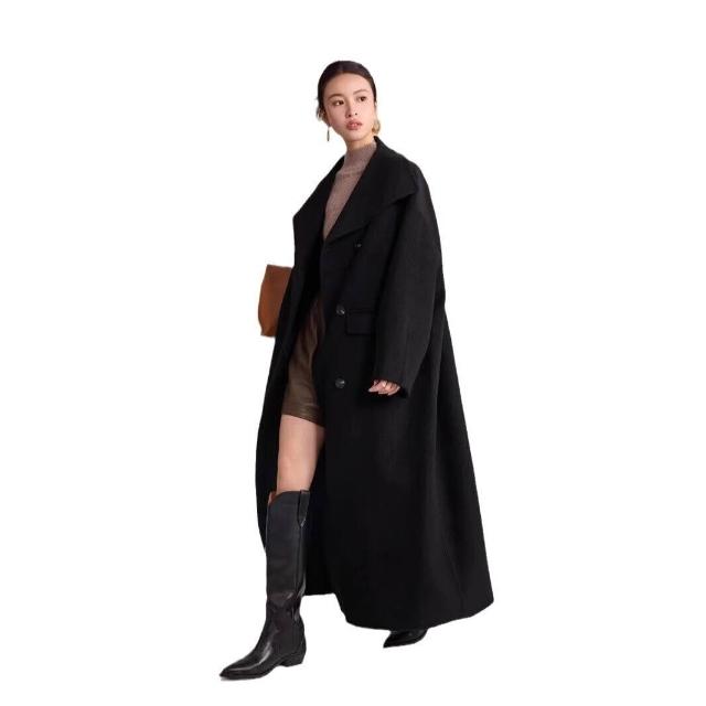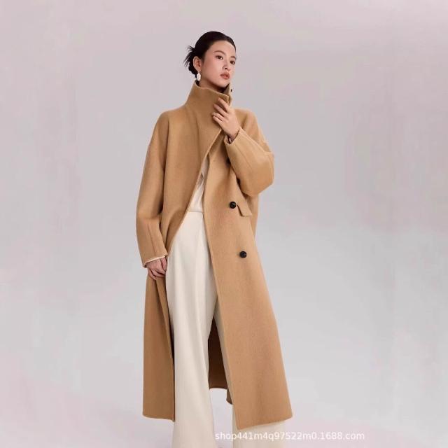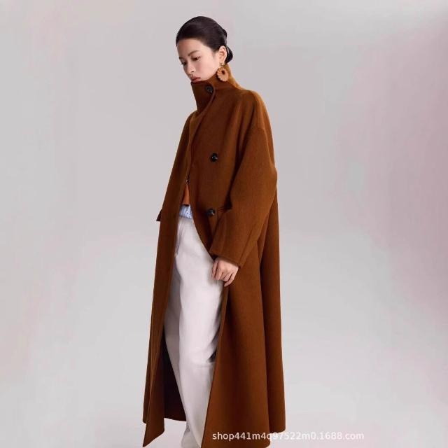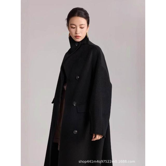 韓版立領加長款過膝雙面羊毛大衣2025秋冬新款高級感毛呢外套女士