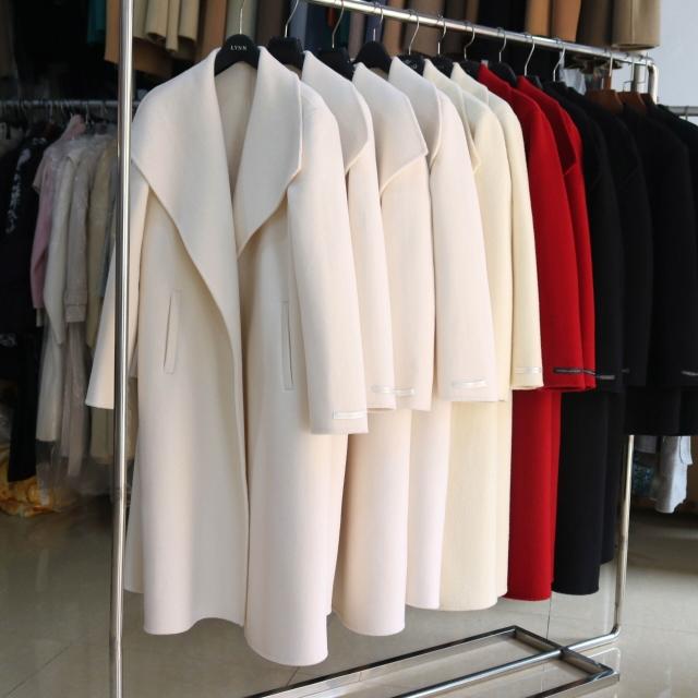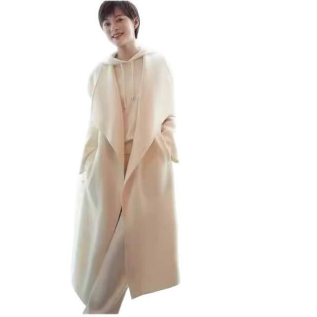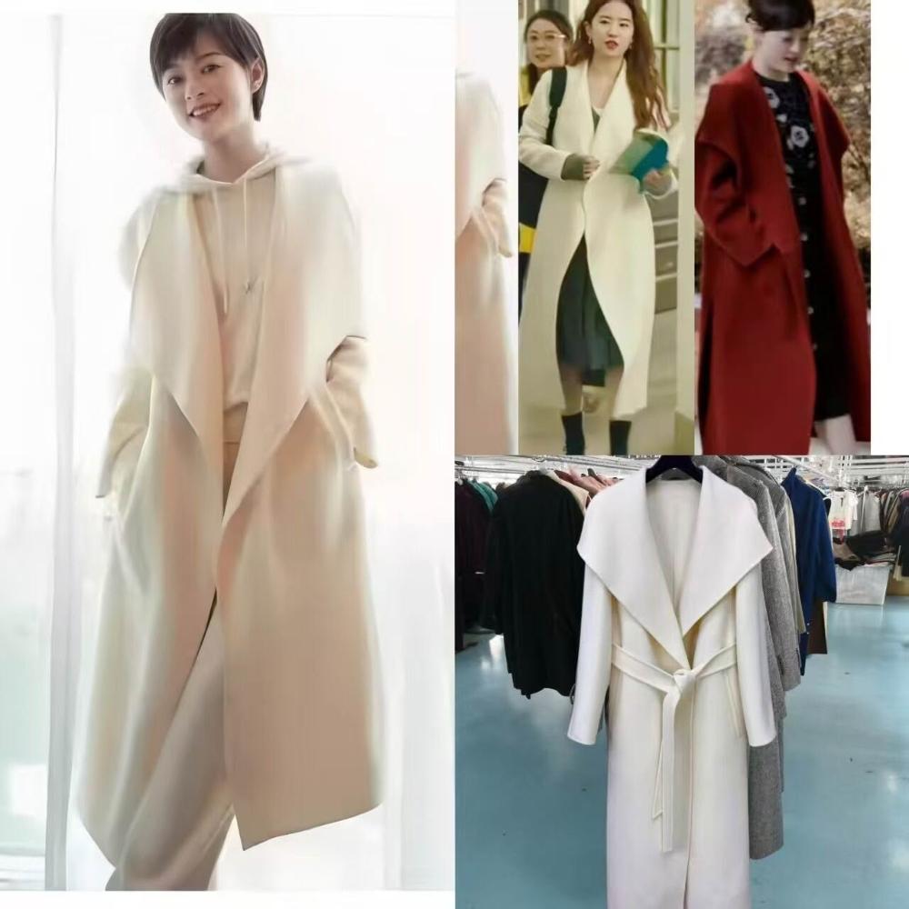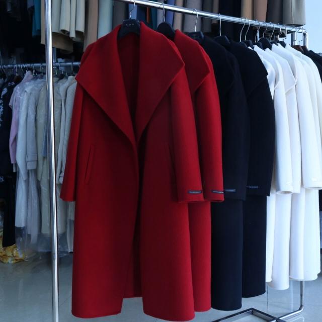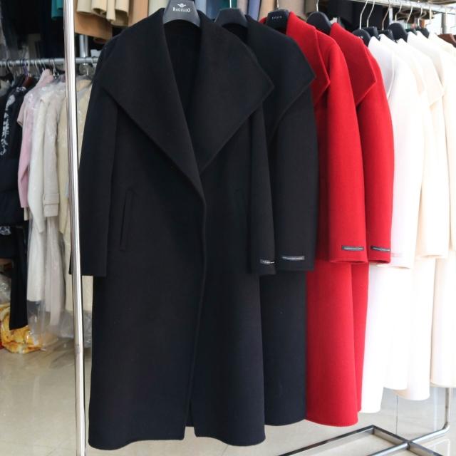 紅色高級感雙面羊絨大衣女秋冬赫本風大翻領小個子長款厚毛呢外套