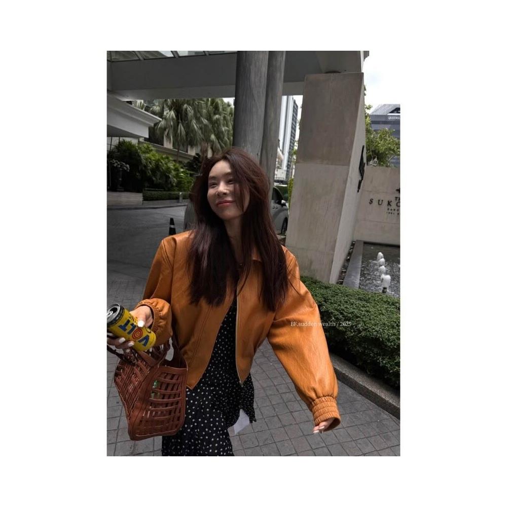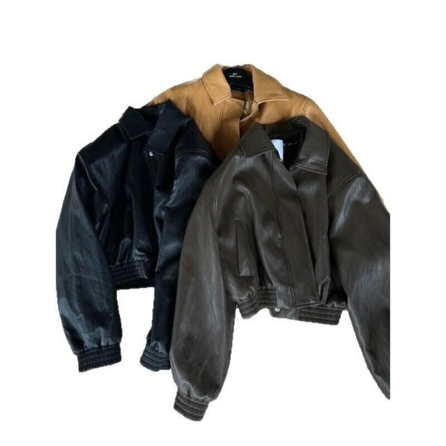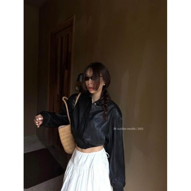 2025秋季新款韓版洋氣時尚翻領拉鏈顯瘦PU皮衣外套女