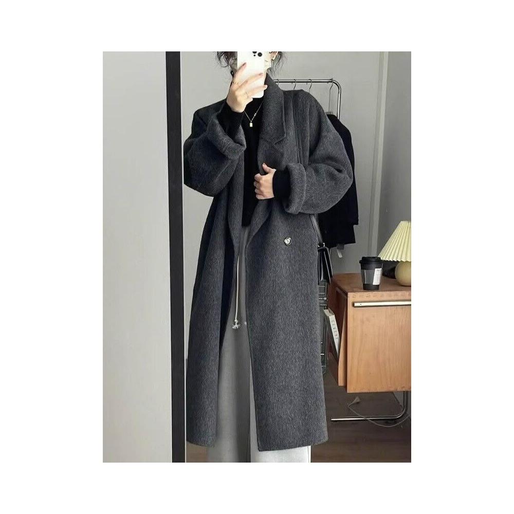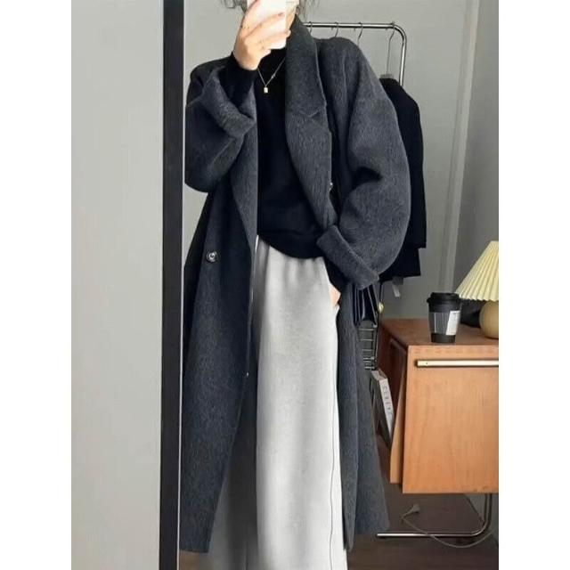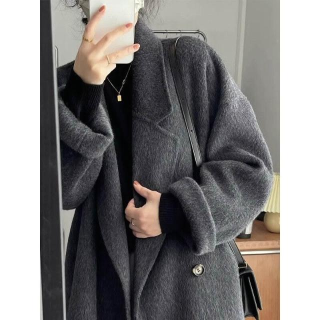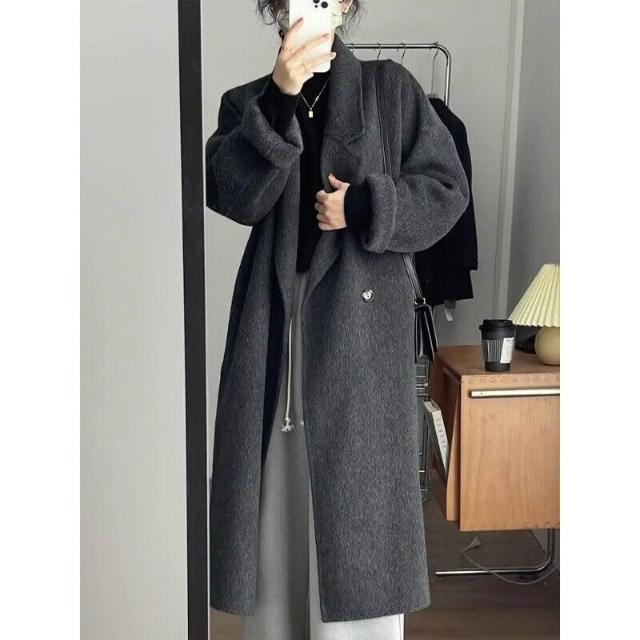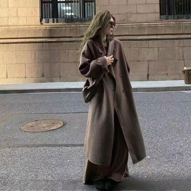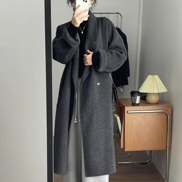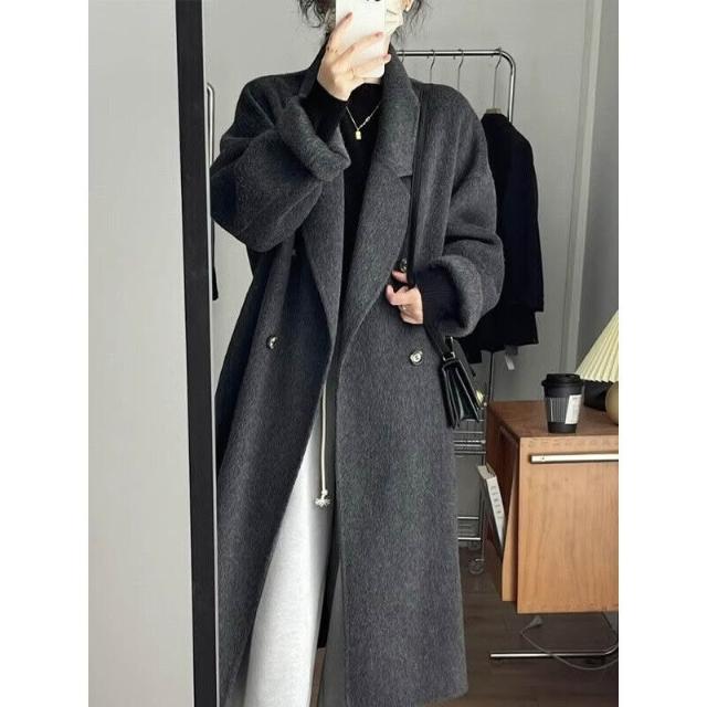 高端雙面羊絨大衣女中長款2025秋冬新款韓版羊毛赫本風毛呢子外套