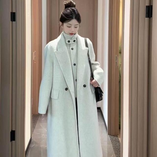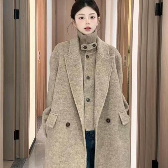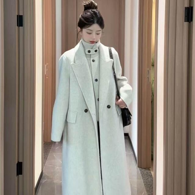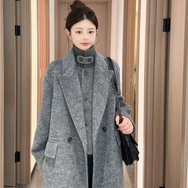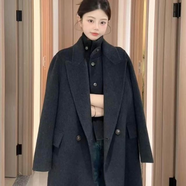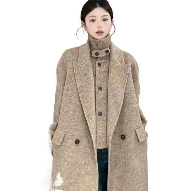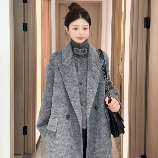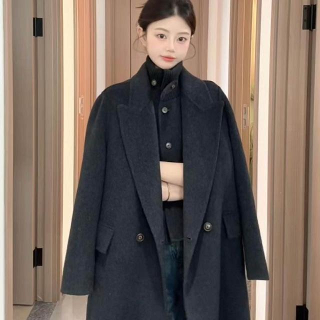 韓版立領雙面羊毛呢大衣感長款減齡風格女士大衣2025秋冬新款