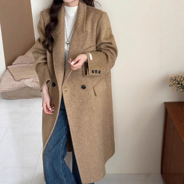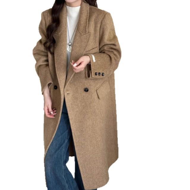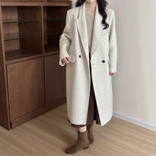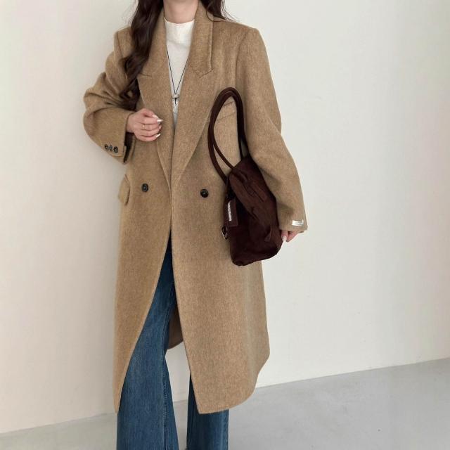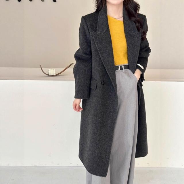 2025秋冬新款高級感正肩雙面羊毛大衣韓版赫本風通勤羊毛呢外套女