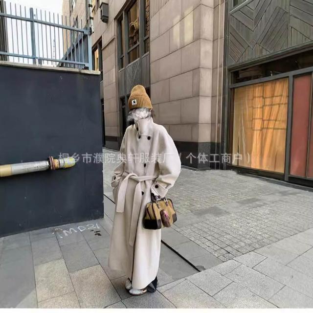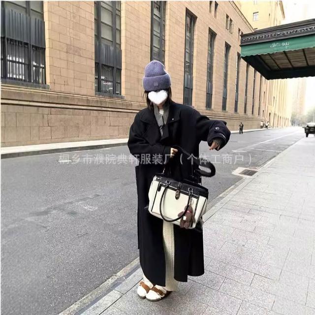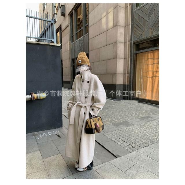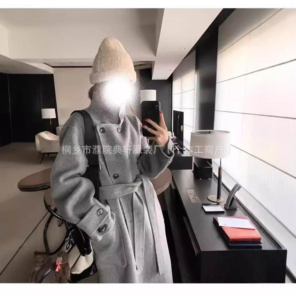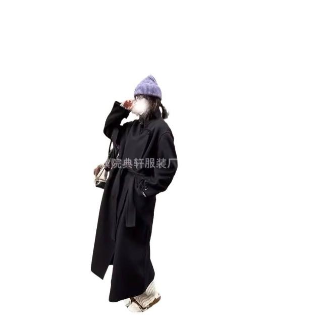 秋冬高級感百搭毛呢立領長款寬松氣質流行韓版雙面羊毛大衣外套女