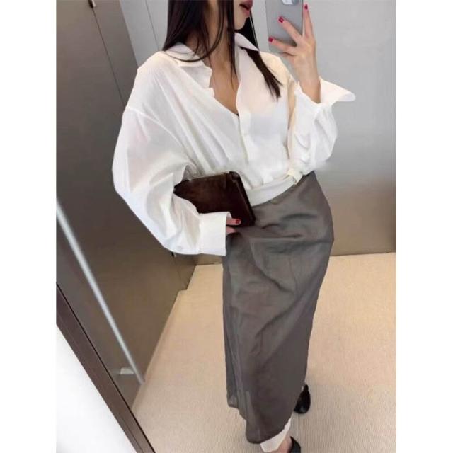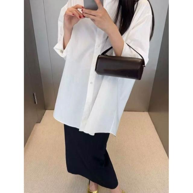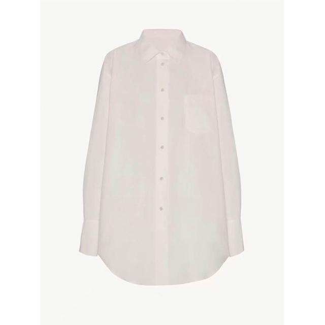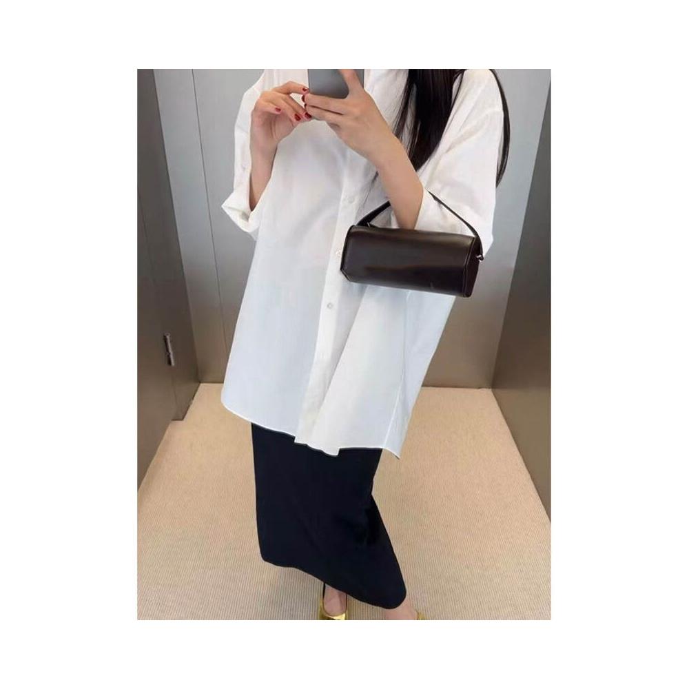 25早秋row極簡翻袖廓形襯衫女士白色長袖上衣外套休閑寬松