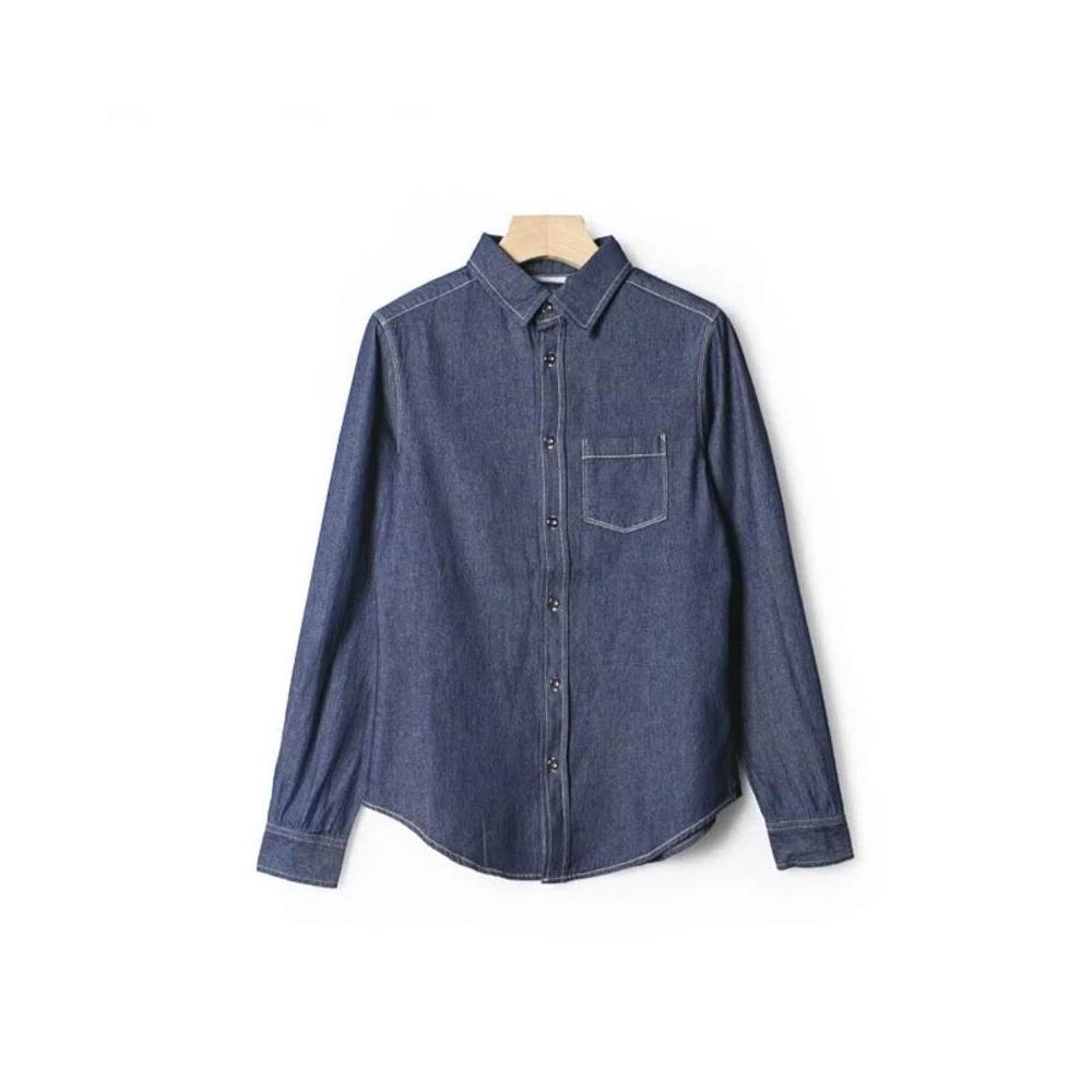 時髦精正肩撞色線牛仔襯衫疊穿秋冬2025新款女休閑舒適潮