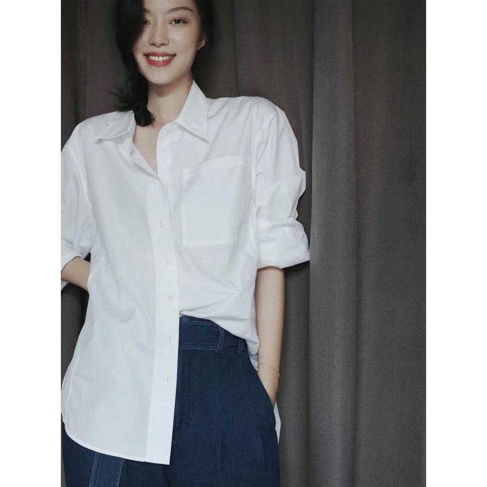 秋季新款白色襯衫女內搭冷淡系高級感上衣寬松休閑氣質通勤棉襯衣