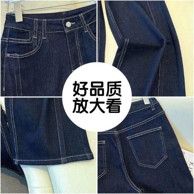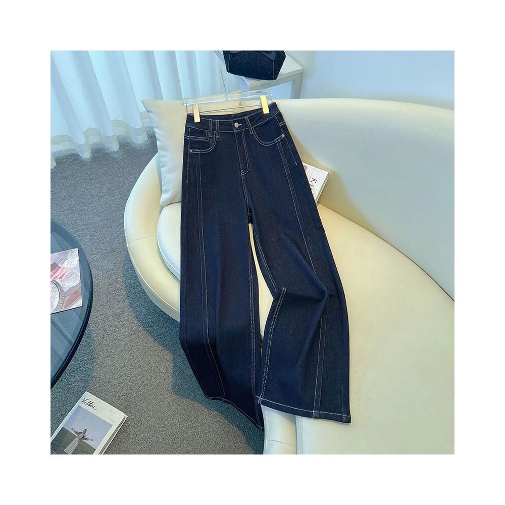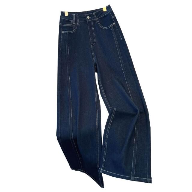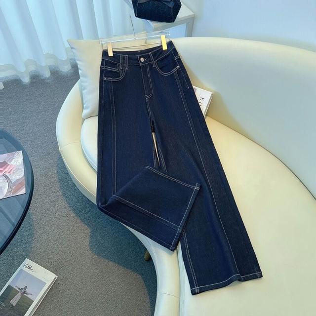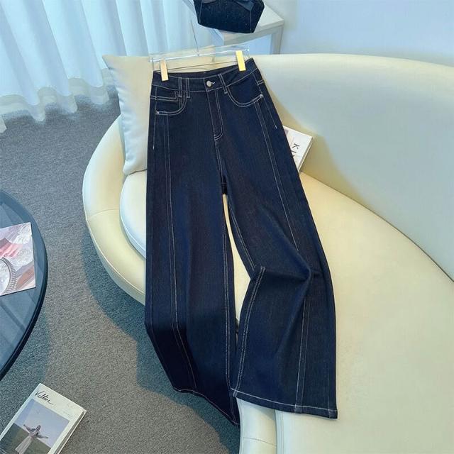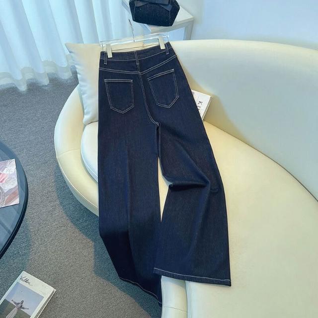 新款 深藍色闊腿牛仔褲女2025秋季新款高腰顯瘦寬松高腰垂感直筒休閑褲