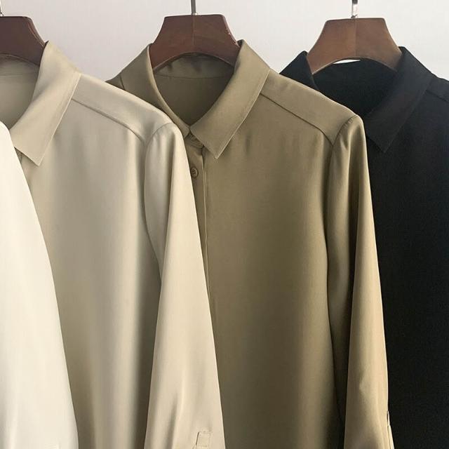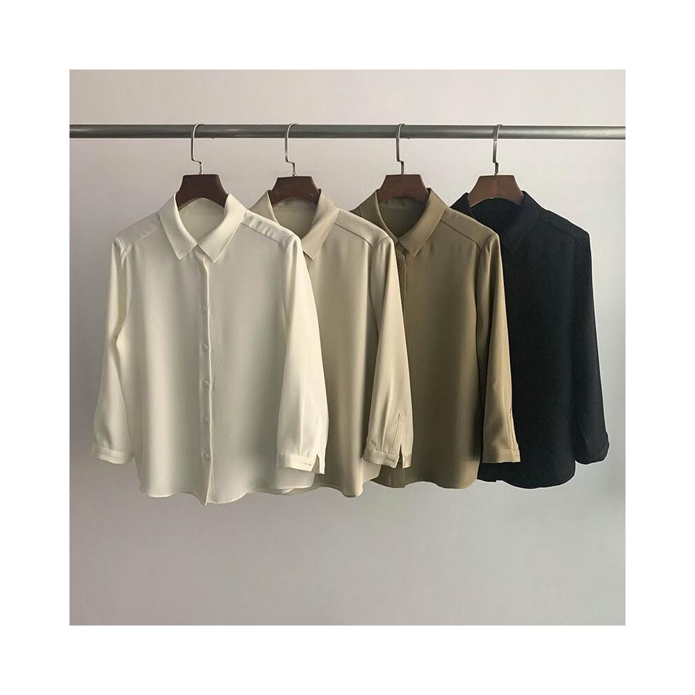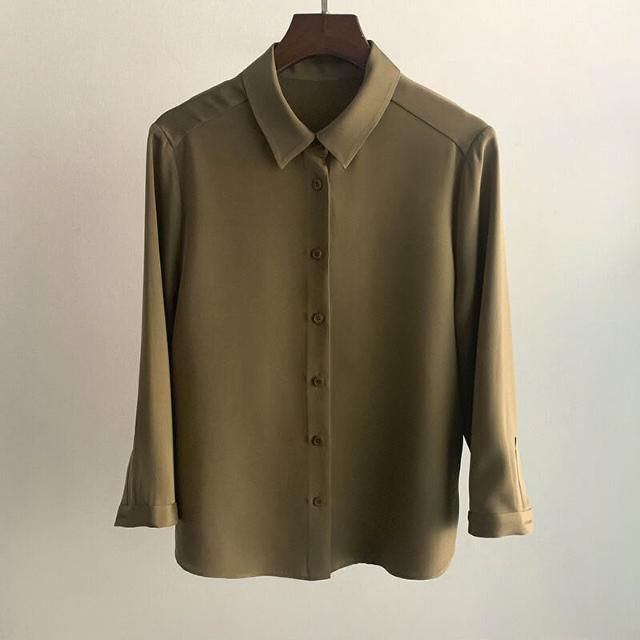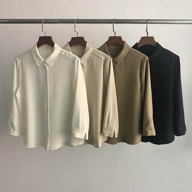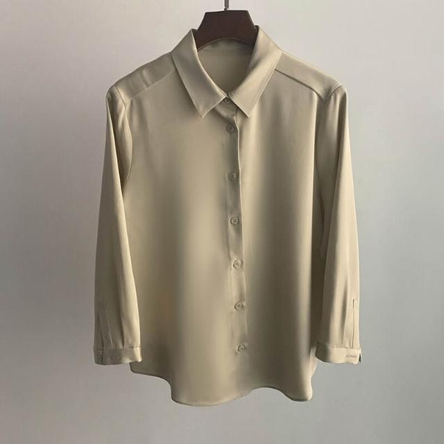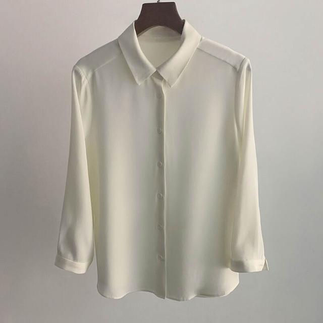 新款 真絲七分袖襯衣 簡約篙品質輕奢氣質通勤OL短款襯衫上衣女款