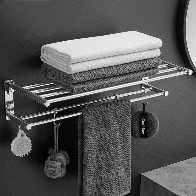 304不銹鋼亮光毛巾架衛生間折疊浴巾架浴室置物架浴室收納浴巾架