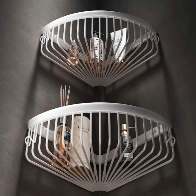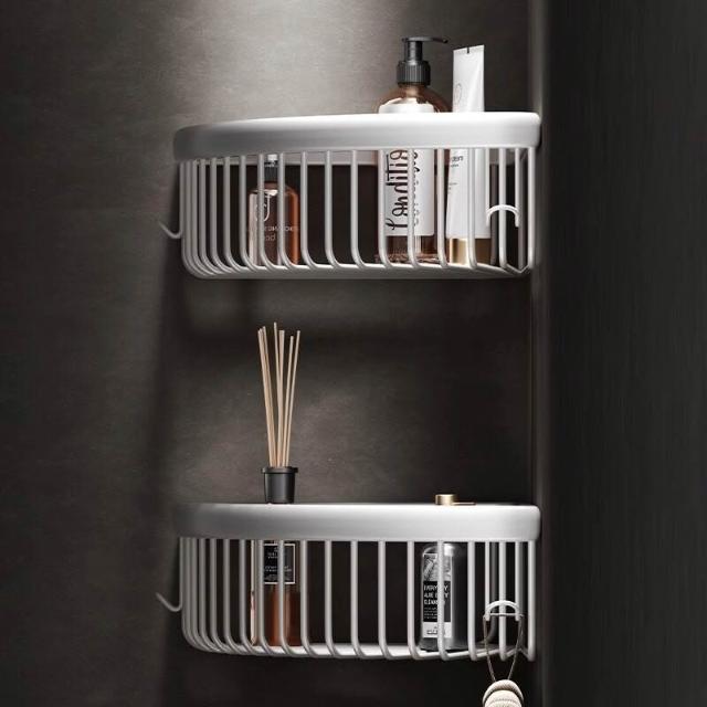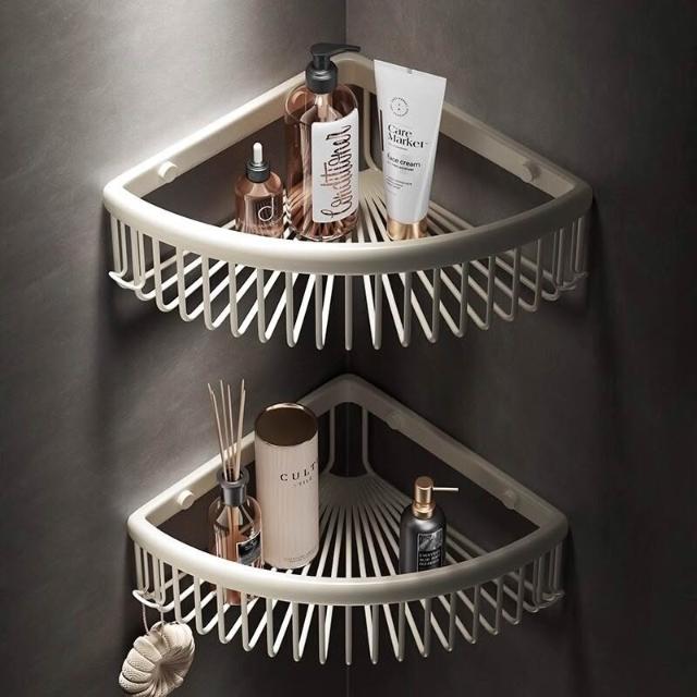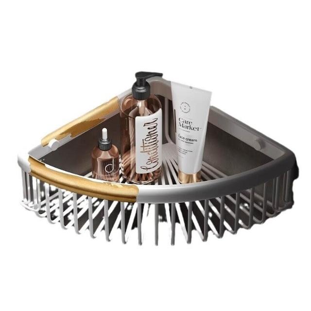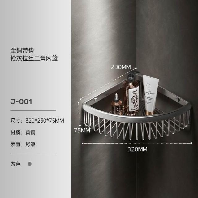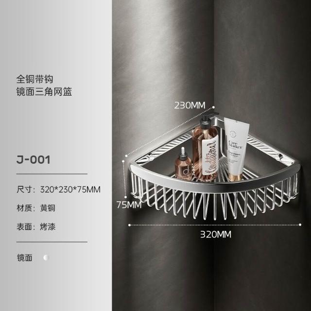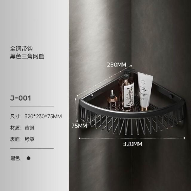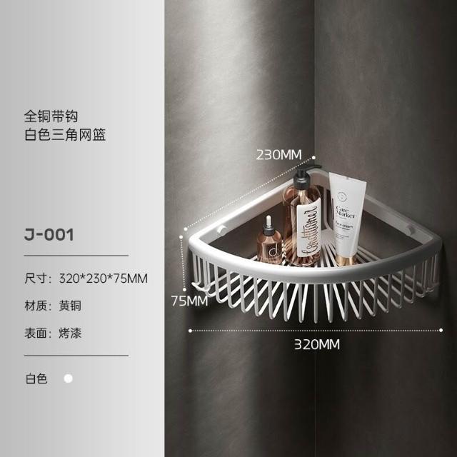 全銅浴室三角置物架免打孔加大衛生間壁掛角籃淋浴房置物架三角籃
