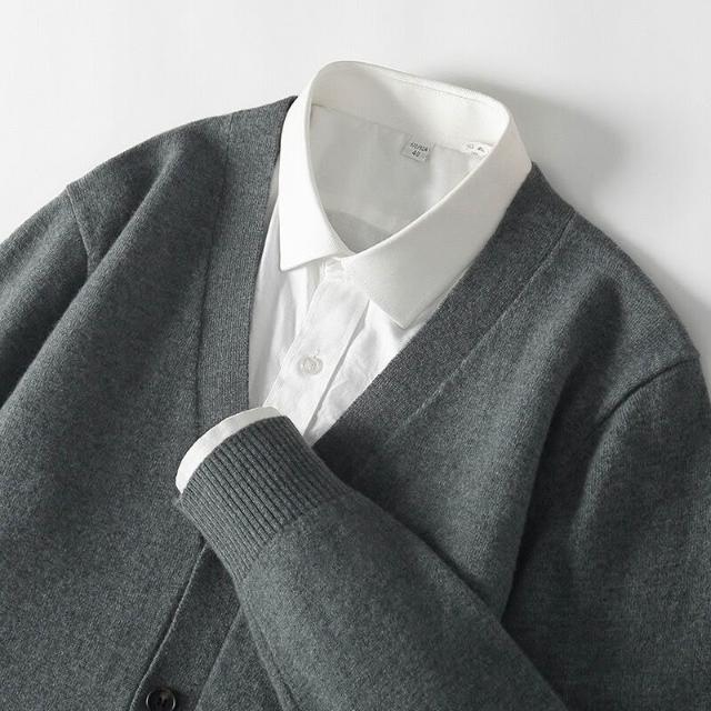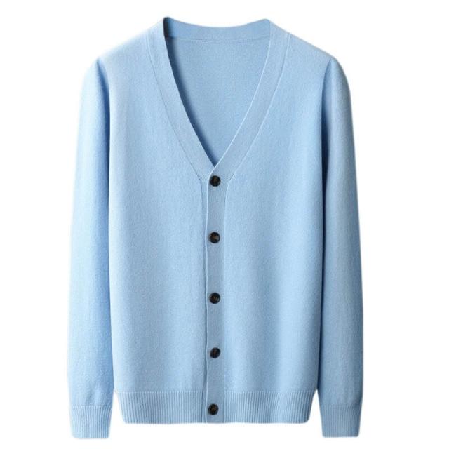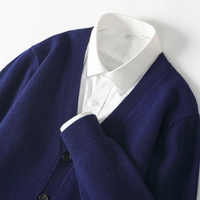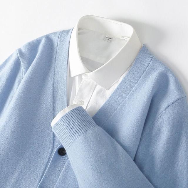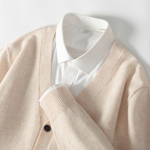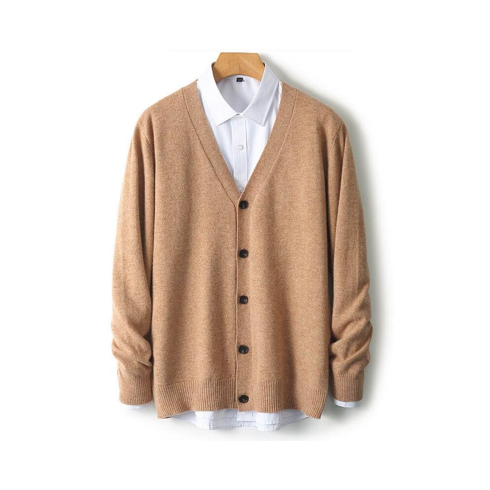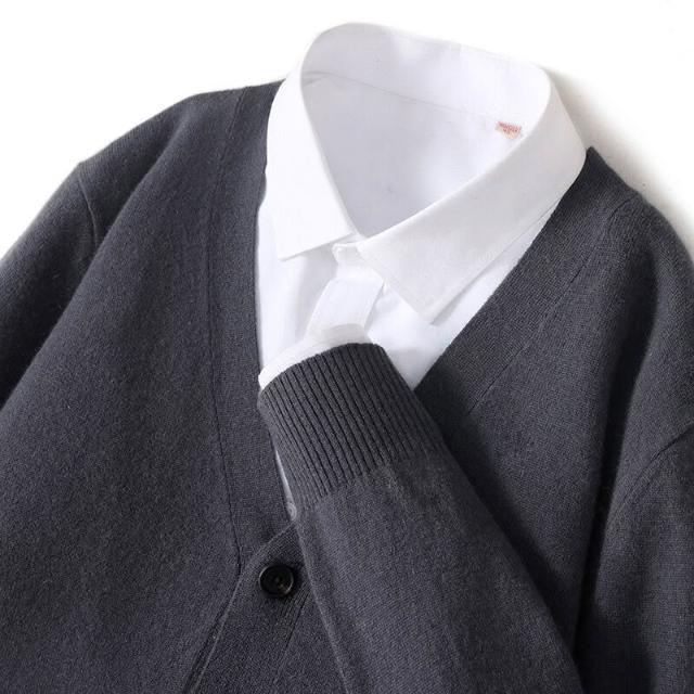 軟糯親膚~100%山羊毛開衫男士V領商務休閑時尚寬松毛衣羊毛衫外套