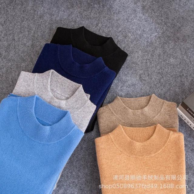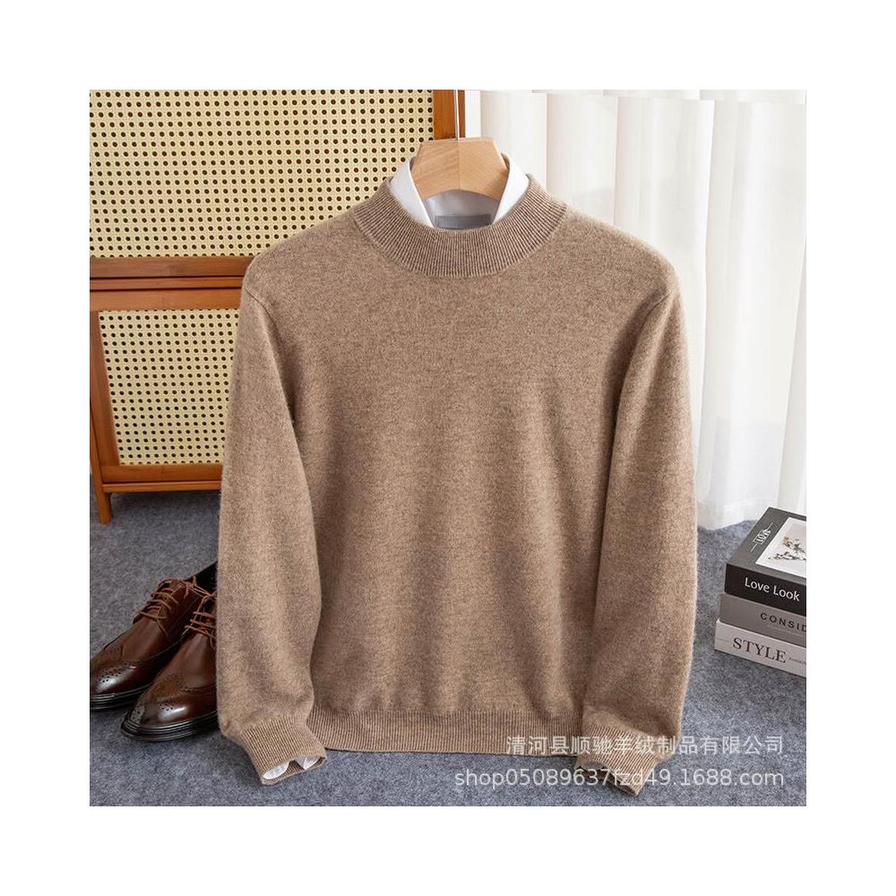 秋冬男士休閑簡約商務羊毛衫半高領領百搭長袖套頭羊絨打底衫厚款