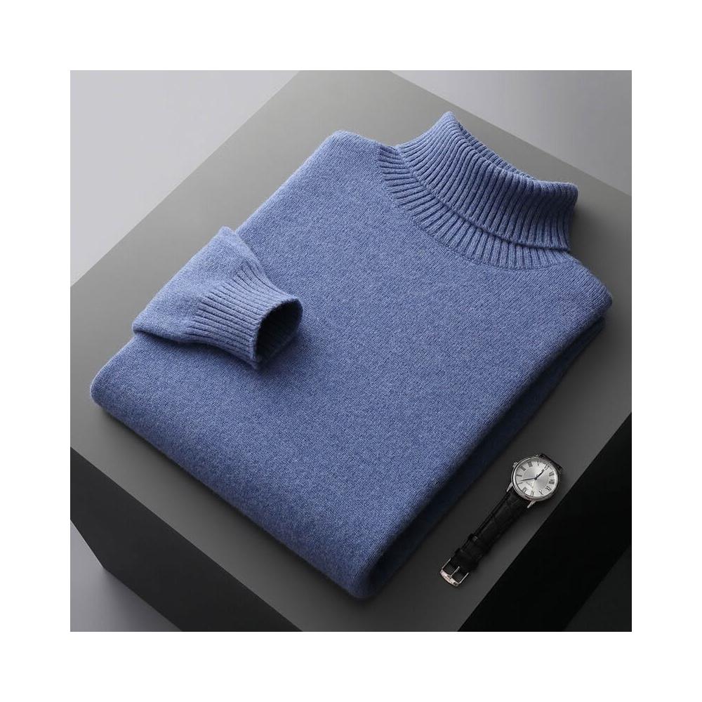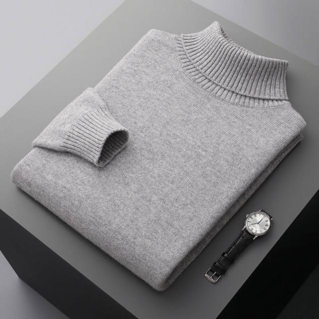 秋冬新款100%純羊毛衫男高翻領羊絨衫寬松加厚套頭休閑毛衣打底衫