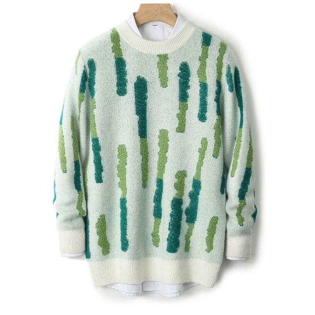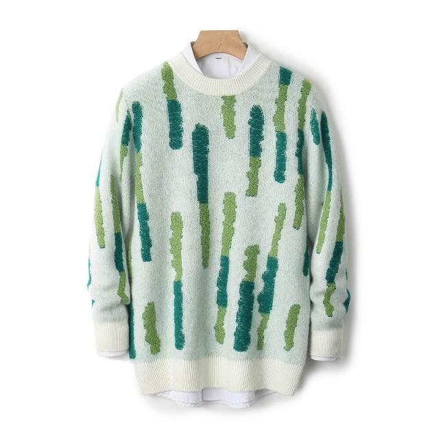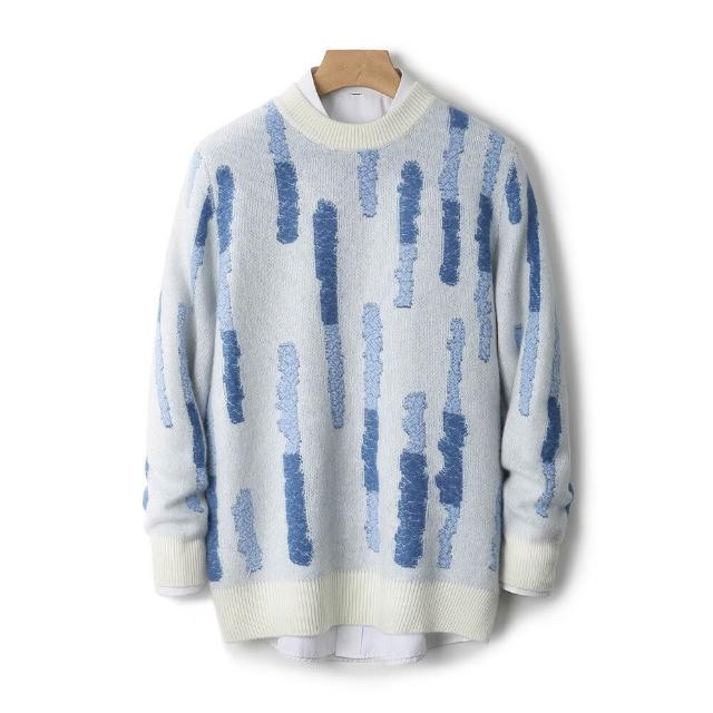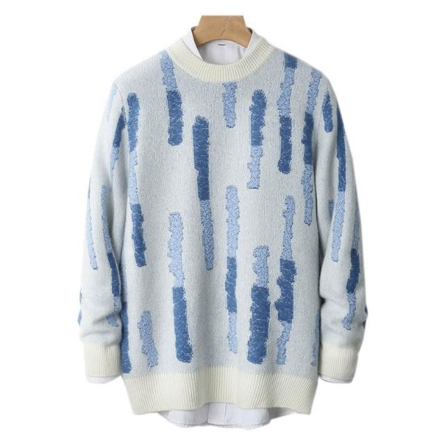 新款純羊毛衫男士格調慵懶時尚不挑身材百搭情侶加厚毛衣街頭撞色