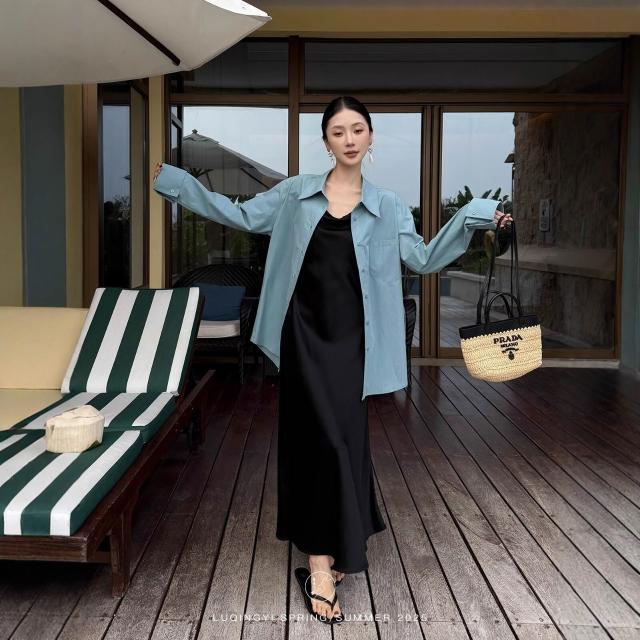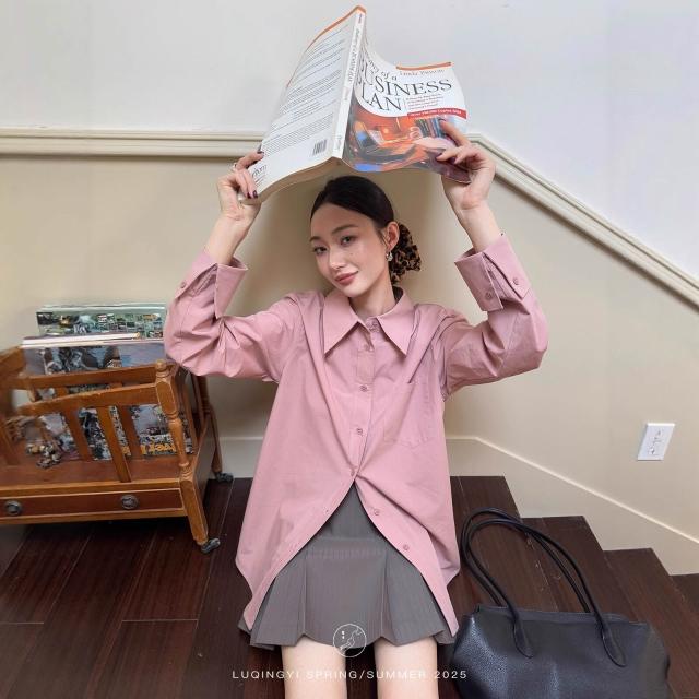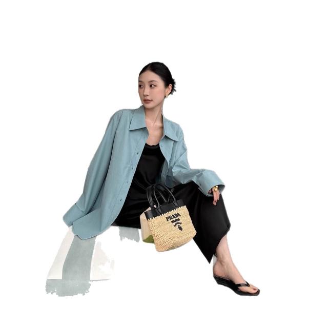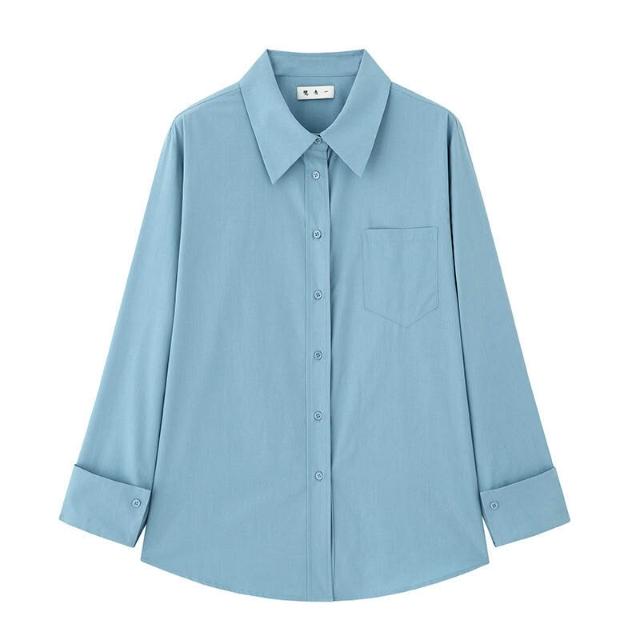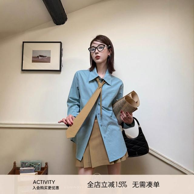 青一【悠藍萊賽爾棉襯衫女春經典純色設計感法式休閑上衣