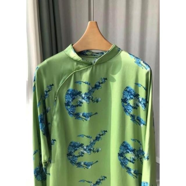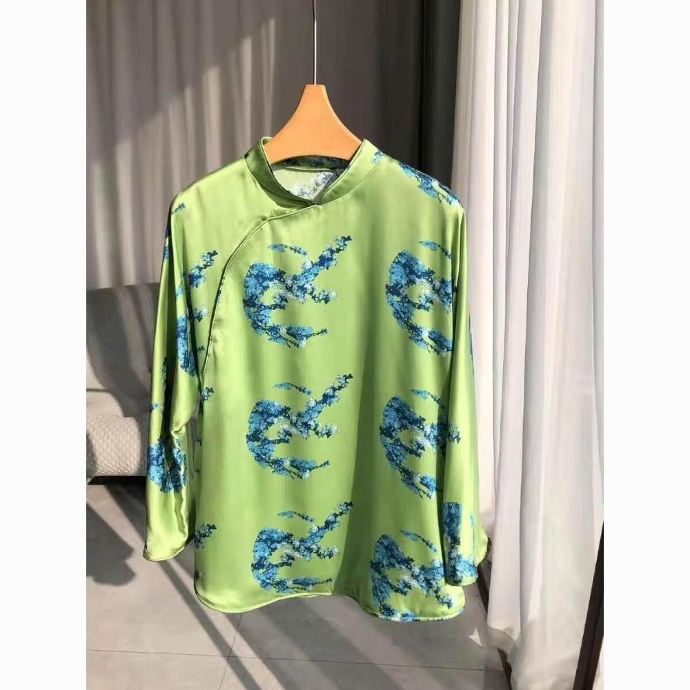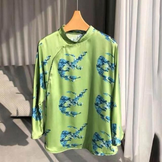 新中式唐裝國風立領九分袖綠色襯衫女氣質顯瘦高端外搭上衣