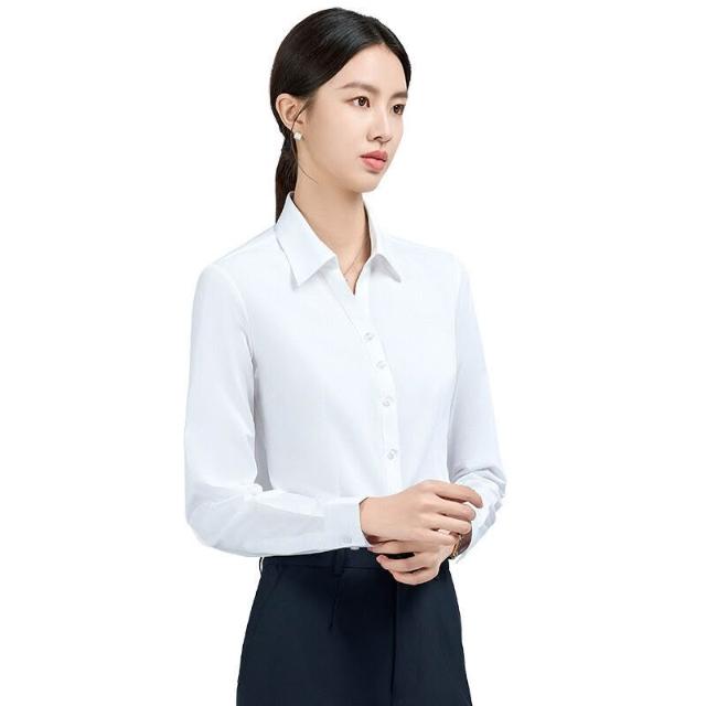 襯衫女長袖商務職業正裝全棉DP成衣高檔免燙上衣女式白襯衣